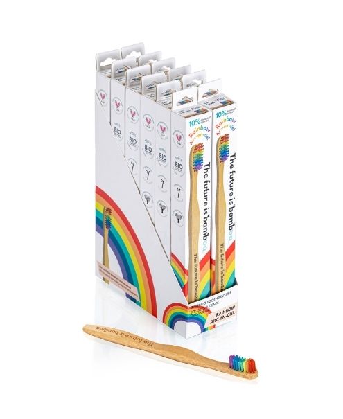 Introduce sustainable living to your little ones with The Future Is Bamboo Kids Rainbow Toothbrushes. This 12-pack of vibrant, eco-friendly toothbrushes makes oral hygiene fun while minimizing your environmental impact. Crafted from sustainably harvested bamboo, these toothbrushes are a planet-friendly alternative to traditional plastic toothbrushes. Each brush features soft, BPA-free bristles that are gentle on children's gums and teeth, ensuring a comfortable and effective clean.