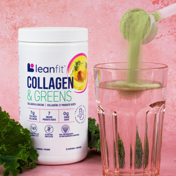 LEANFIT COLLAGEN & GREENS, Tropical Mango - 7g Grass-Fed Bovine Collagen (Type I, III) + 2 Seaweeds + 5 Leafy Greens Per Serving - 25 Servings, 257g Tub