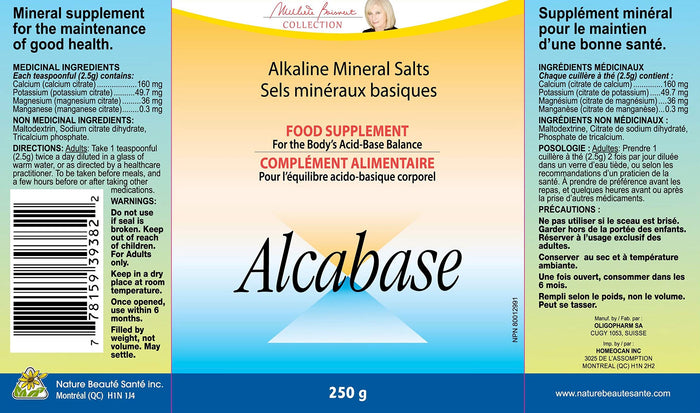Homeocan Alcabase Alkaline Mineral Salts Powder 250g 100 Servings, Supports pH Balance & Vitality with Calcium, Magnesium & Potassium, Promotes Energy & Active Living, Clean & Easy-to-Mix, No PH Paper
