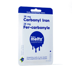 Fulfill your daily iron needs with the Nutrameltz Carbonyl Iron. These oral supplements are blueberry flavoured and contain 28 mg of carbonyl iron per tablet to give you the boost you need for optimum health. The supplement delivers a potent form of iron that is highly bioavailable for easy absorption while being gentle on the stomach.