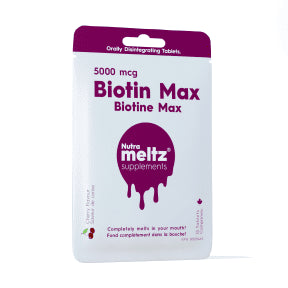 Prevent deficiency in the body with Nutrameltz Biotin. This oral supplement comes with 5000 mcg of biotin per tablet to make sure you are functioning at the optimum level. An essential vitamin, biotin is responsible for the production of keratin which is the building block of hair, skin and nails. It gives strength to your locks while also boosting nails to grow healthier. Biotin enhances the working of the digestive system to make sure food is properly metabolised and more nutrition is absorbed by the body. It aids the conversion of food into energy so you feel more active and lively. Use daily for optimum results while enjoying the delectable taste of cherry with each tablet.