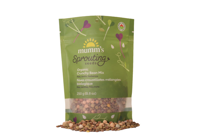 - Organic Crunchy Bean Mix - A blend of garbanzos (chickpeas), lentils, and peas. Crunchy Bean Mix is a great sprouted ingredient in raw hummus and stir-fries.