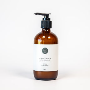 Nourish and comfort dry, irritated skin with this luscious and silky body lotion. Combining the healing power of mango butter with softening jojoba and vitamin E, this lotion is gentle enough to soothe, smooth and protect your skin from neck to toe. We’ve left the essential oils out of this formula so that you can live comfortably scent-free, let your chosen scents shine through, or add custom scents to your liking.
