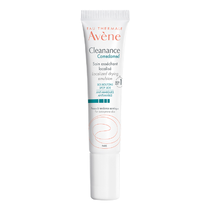 The Cleanance Comedomed Localized drying emulsion is an ''SOS'' skincare for dry skin that reduces the appearanec of localised imperfections and limits the look of residual marks. Visible effect from the first day of application*. This skincare combines a unique complex of dermatological key ingredients with formidable properties while ensuring good tolerance: Comedoclastin™ at a dosage of 7% (stabilised milk thistle extract with patented properties), retinaldehyde at 0.1% (cosmetic precursor of vitamin A) and glycolic acid at 6%. The recipe for success! Easy to dose and apply thanks to its targeted cannula tip, this ultra-light emulsion penetrates the skin quickly.