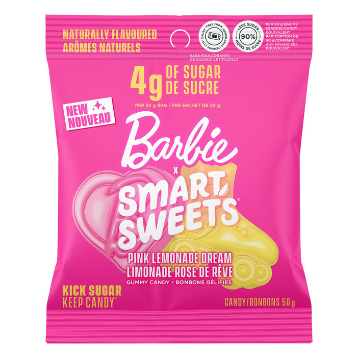 - KICK SUGAR: Pink Lemonade Dream Gummies will transport you back to your childhood days filled with lemonade stands and daydreams. Enjoy the delicious pink lemonade flavour in three dreamy shapes: pink Barbie logo, pink heart, and yellow rollerblades