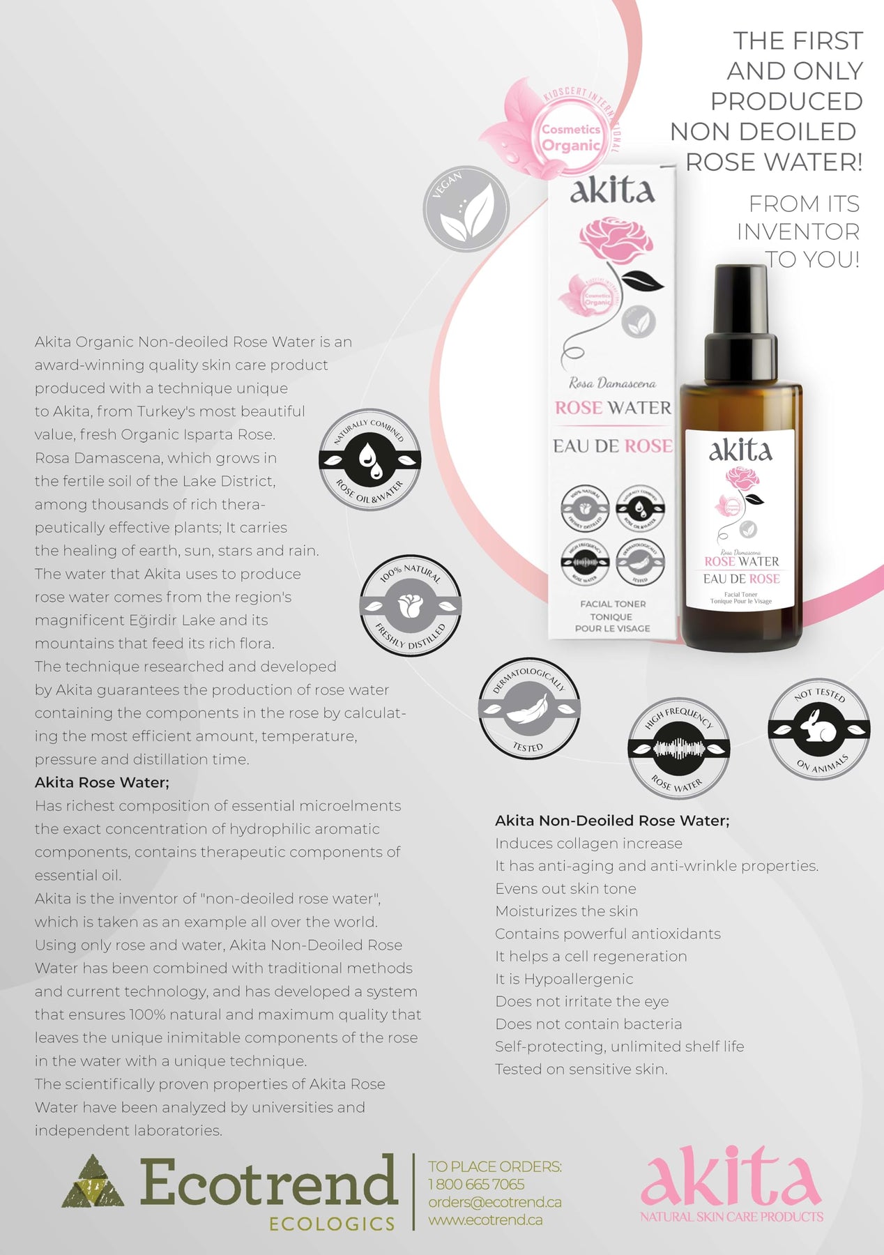 Akita All Natural Rose Water is a versatile and revitalizing elixir crafted from the finest rose petals. This gentle floral water hydrates, tones, and refreshes the skin, leaving it feeling soft, balanced, and radiant. Perfect for all skin types, including sensitive skin, it can be incorporated into your daily skincare routine for a natural boost of hydration and a delicate floral aroma.