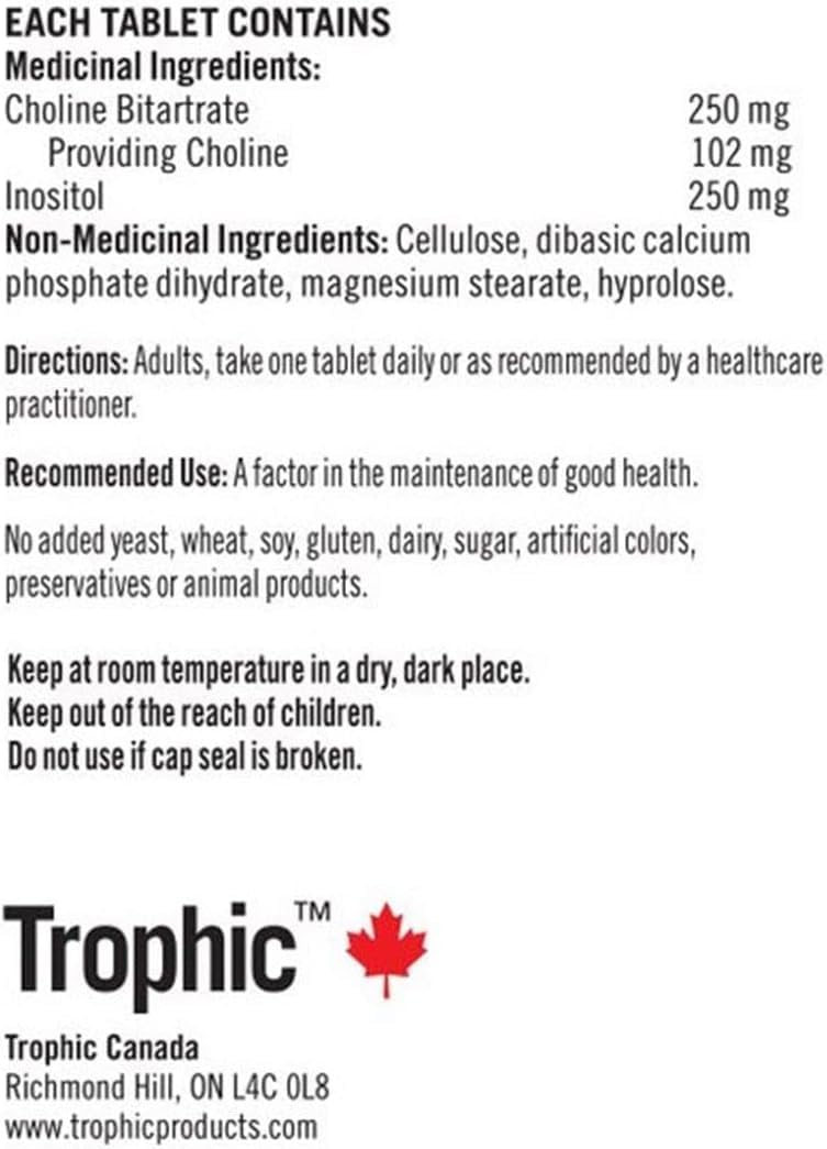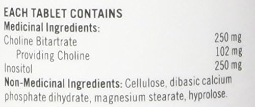 Choline Bitartrate 250 mg, Inositol 250 mg, Non-Medicinal Ingredients: Cellulose, dibasic calcium phosphate dihydrate, magnesium stearate, hyprolose.