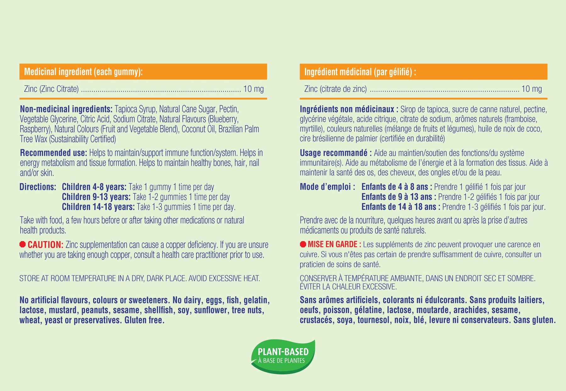 AllKiDz® Zinc Gummies are a plant‑based, vegan/vegetarian gummy formulated to deliver 10 mg of elemental zinc (as zinc citrate) per gummy, supporting optimal immune function in children ages 4 and up. These fruity berry-flavoured gummies contain no animal gelatin, artificial flavours, colours, or sweeteners, and are free of common allergens including dairy, eggs, fish, nuts, soy, wheat, and preservatives.