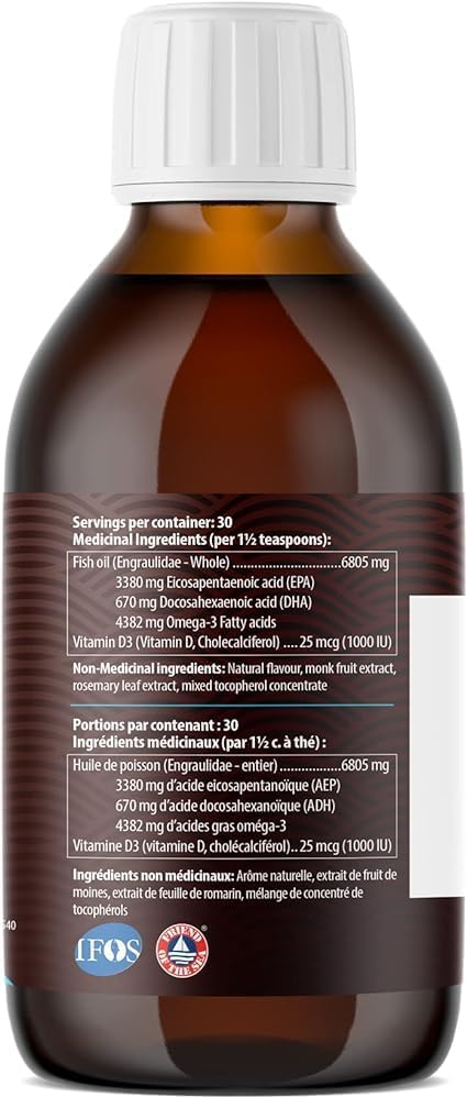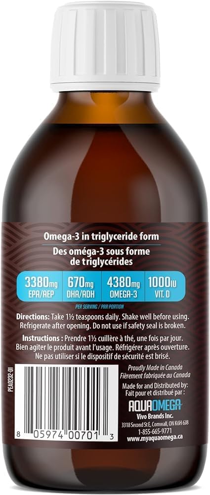 - UNCOMPROMISING QUALITY: AquaOmega ensures purity & sustainability. With over 94% purity, this third-party tested, IFOS-certified omega 3 fish oil liquid meets the highest safety standards, with responsibly sourced ingredients. Proudly made in Canada.