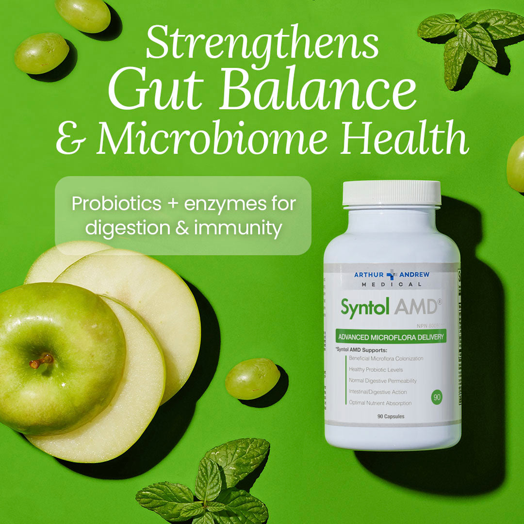 Syntol AMD by Arthur Andrew Medical is a powerful blend of probiotics, prebiotics, and enzymes designed to support optimal digestive health and immune function. This comprehensive formula helps to maintain a healthy gut flora balance, promote regularity, and aid in the breakdown of food for enhanced nutrient absorption. Syntol AMD is carefully formulated to ensure the survival and effectiveness of its probiotic strains, providing targeted support where it's needed most.