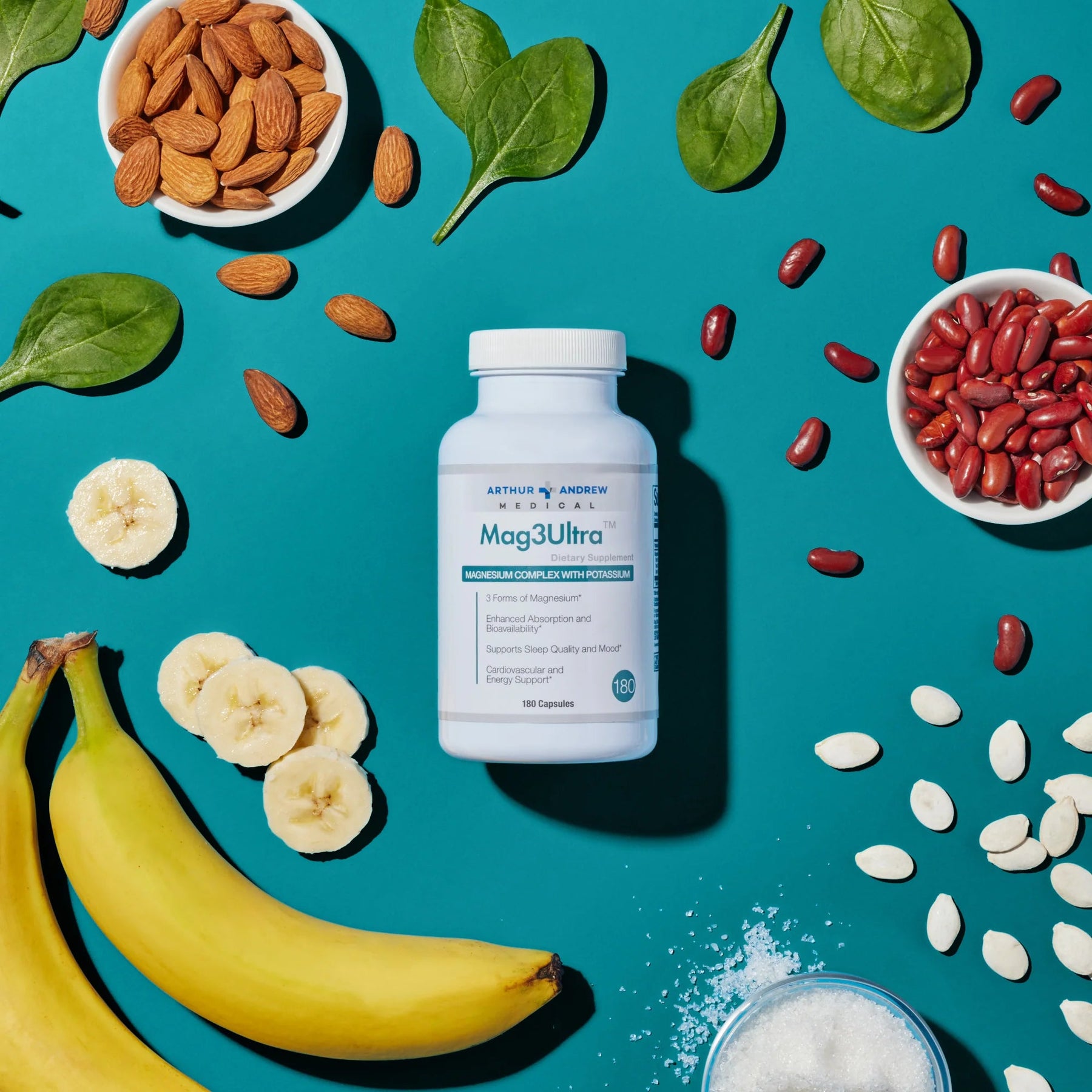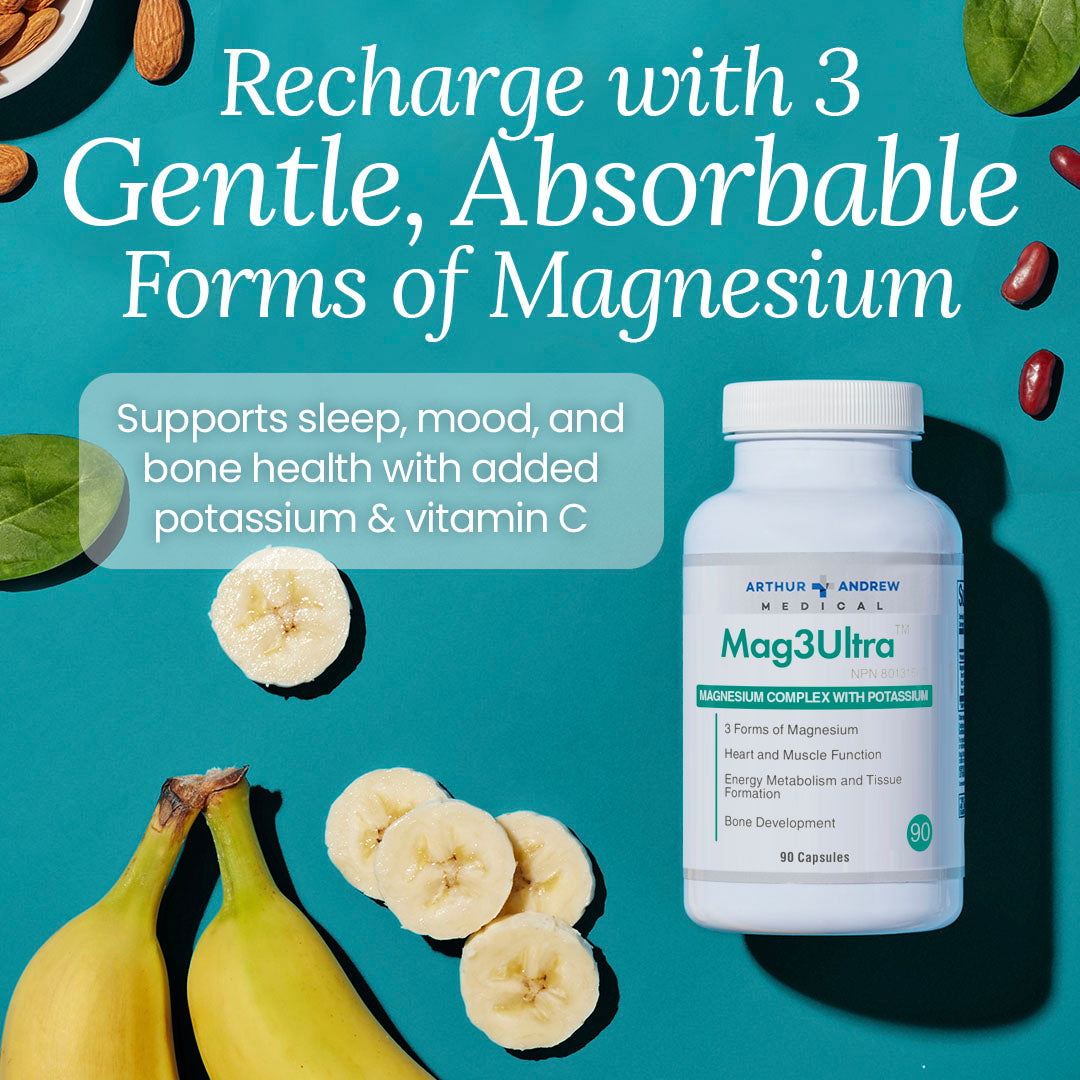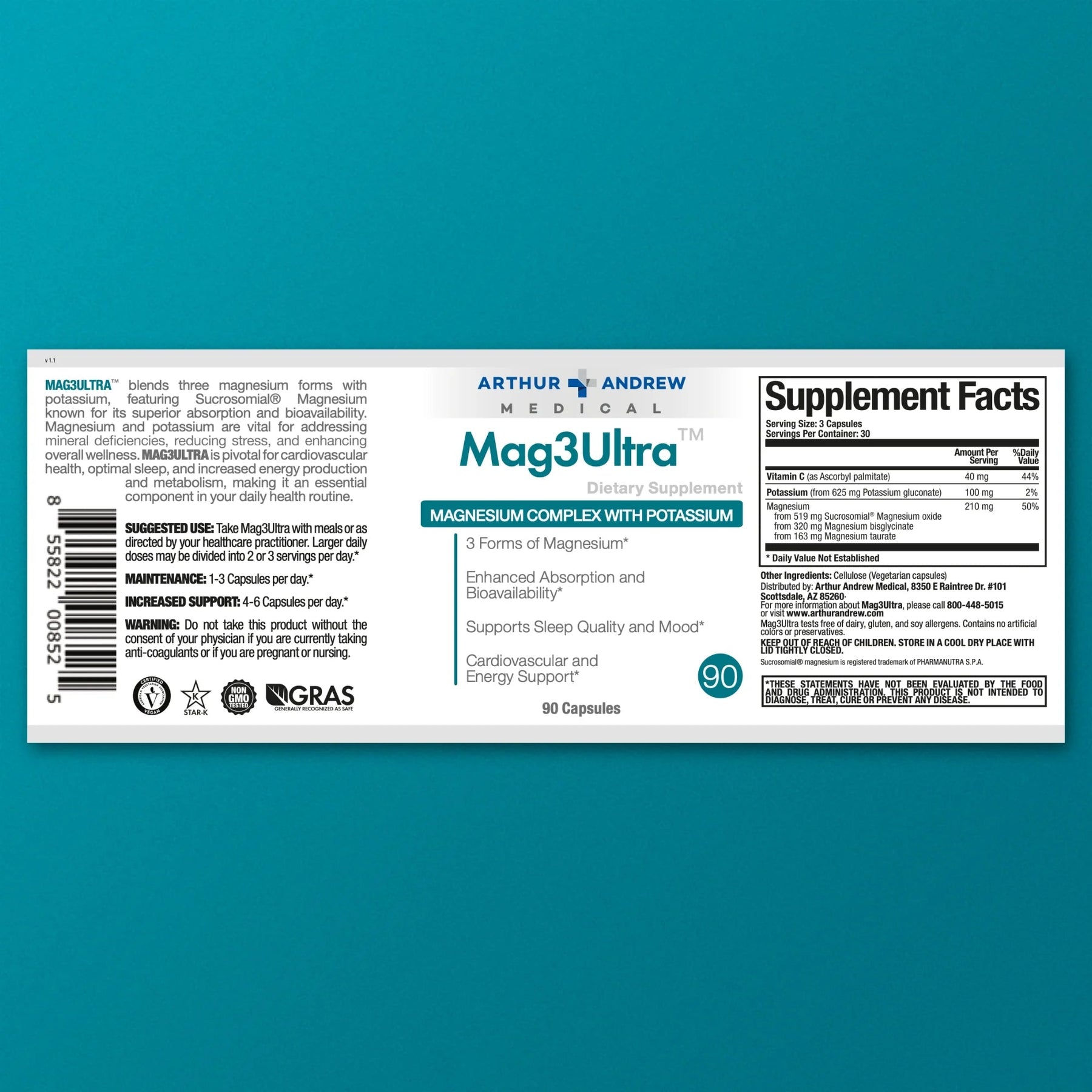 Mag3ultra from Arthur Andrew Medical provides a potent blend of three highly bioavailable forms of magnesium to support overall health and well-being. This comprehensive formula is designed to optimize magnesium levels, contributing to healthy muscle function, nerve transmission, and bone density.*
