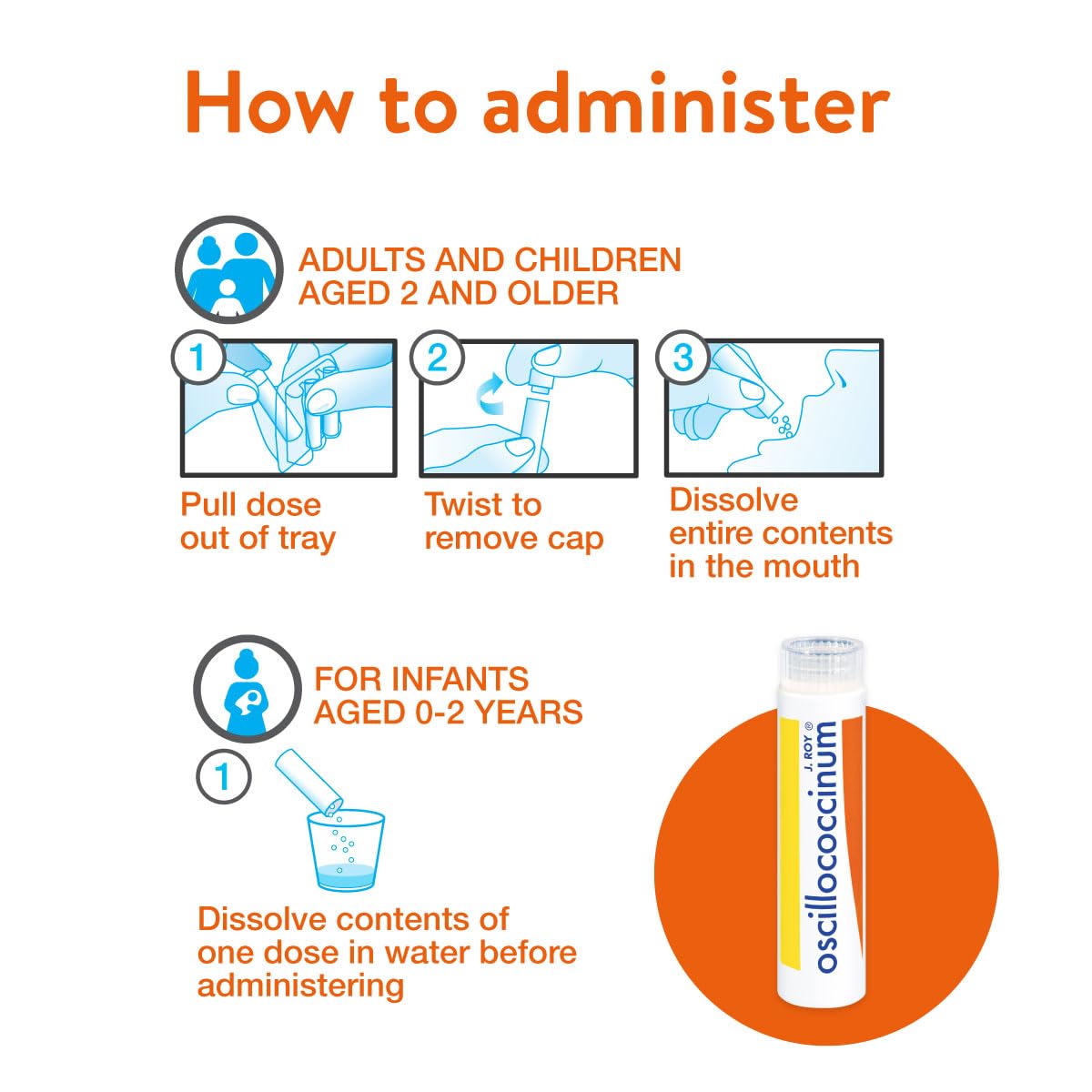 - CONVENIENT PRE-MEASURED DOSES: Oscillococcinum comes in convenient, pre-measured, easy-to-administer tubes. It can be used by the whole family to relieve flu-like symptoms. To administer to younger children, dissolve Oscillo in water.