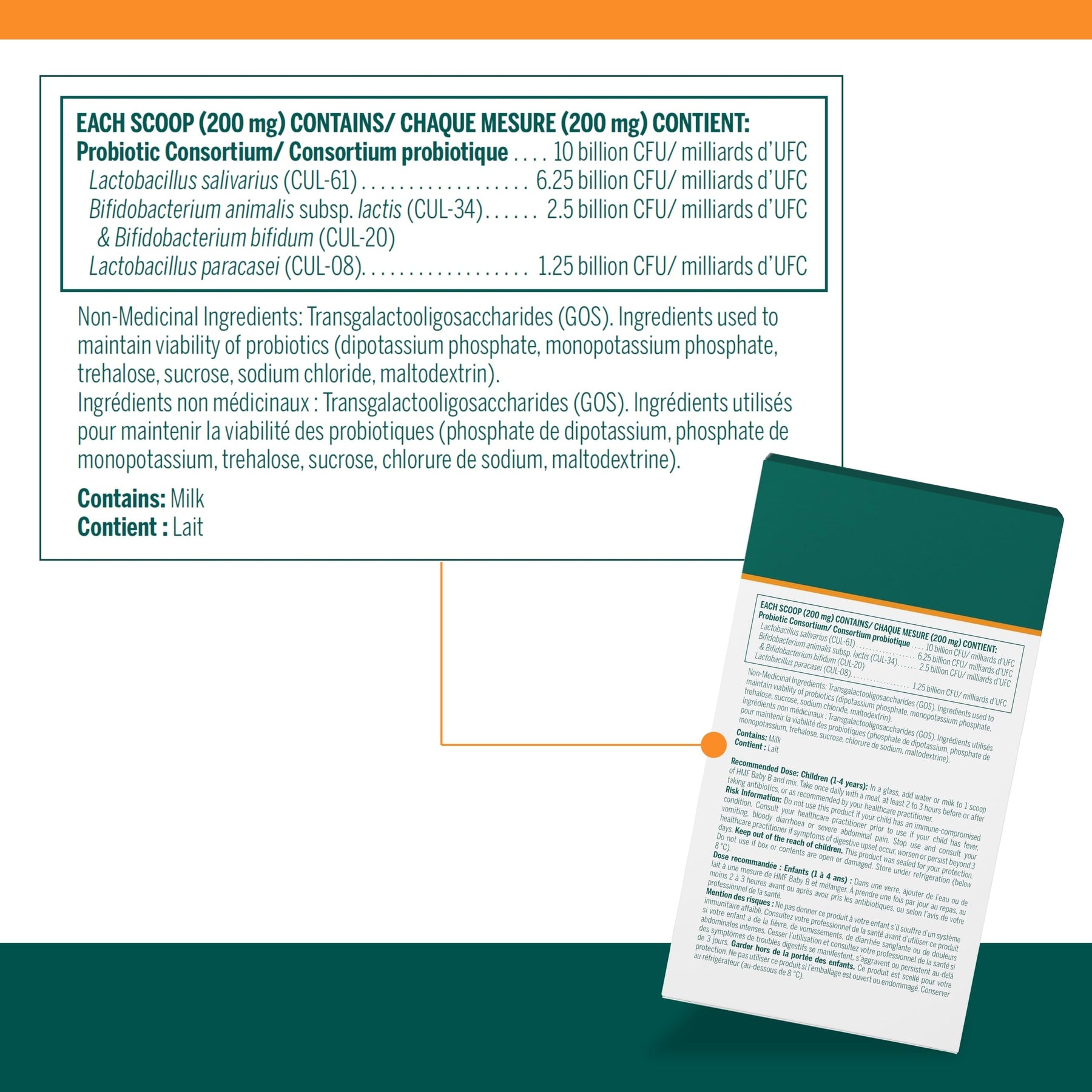 Recommended Dose: Children (1-4 years): In a glass, add water or milk to 1 scoop of HMF Baby B and mix. Take once daily with a meal, at least 2 to 3 hours before or after taking antibiotics, or as recommended by your healthcare practitioner
