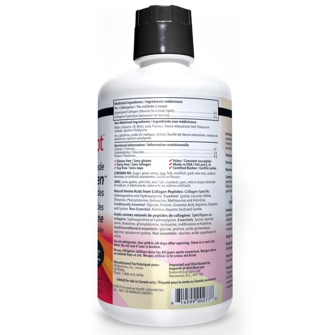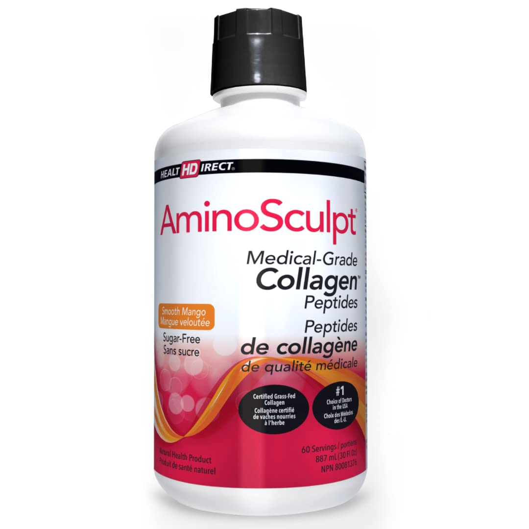 Health Direct AminoSculpt Sugar-Free Liquid Collagen Peptides, Smooth Mango, 887 mL
