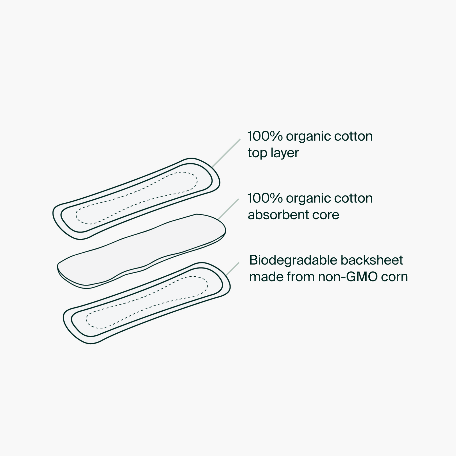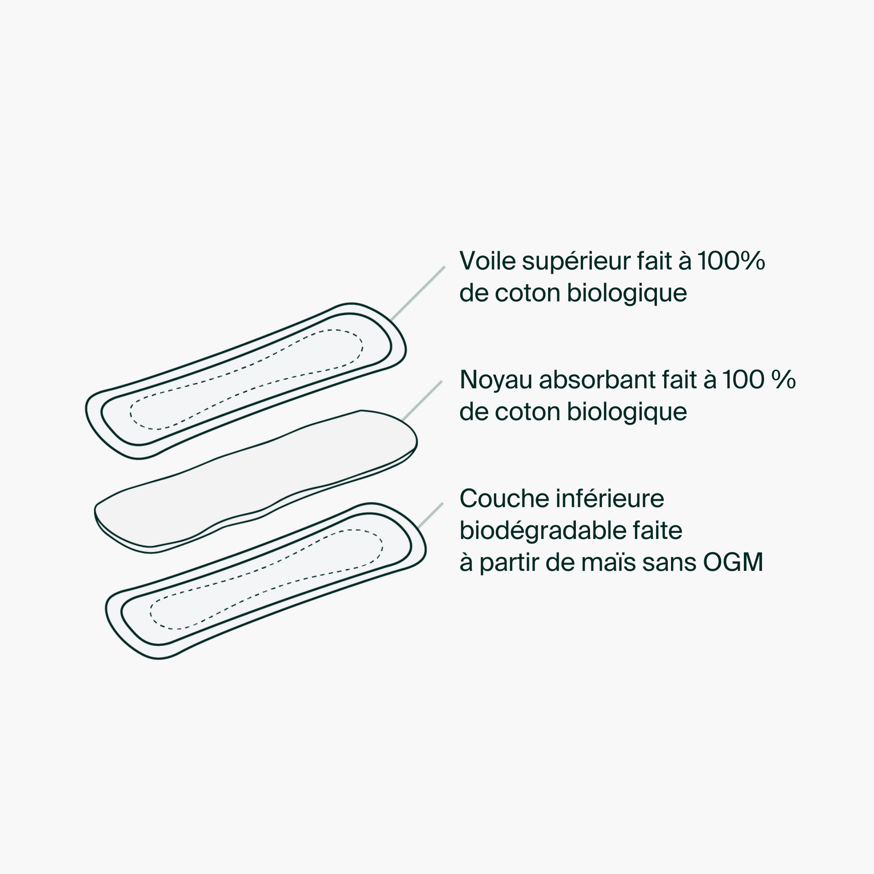 Each biodegradable, compostable pantyliner features a waterproof nappy layer and comes individually wrapped in a compostable biofilm. Packaged in FSC-certified cardboard, our pads offer a gentle, eco-friendly solution to your daily needs—so you can go about your day in total comfort and confidence.