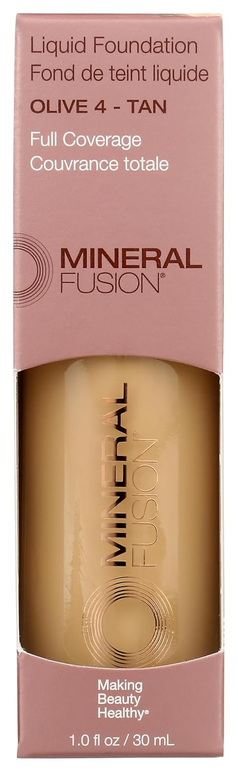 Mineral Fusion Full Coverage Foundation, Liquid Foundation - Olive 4- Med to Tan Complexion w/Olive/Green Undertones, Lightweight Matte Finish, Up to 12 Hr Hydration, Hypoallergenic & Vegan, 1 fl. oz