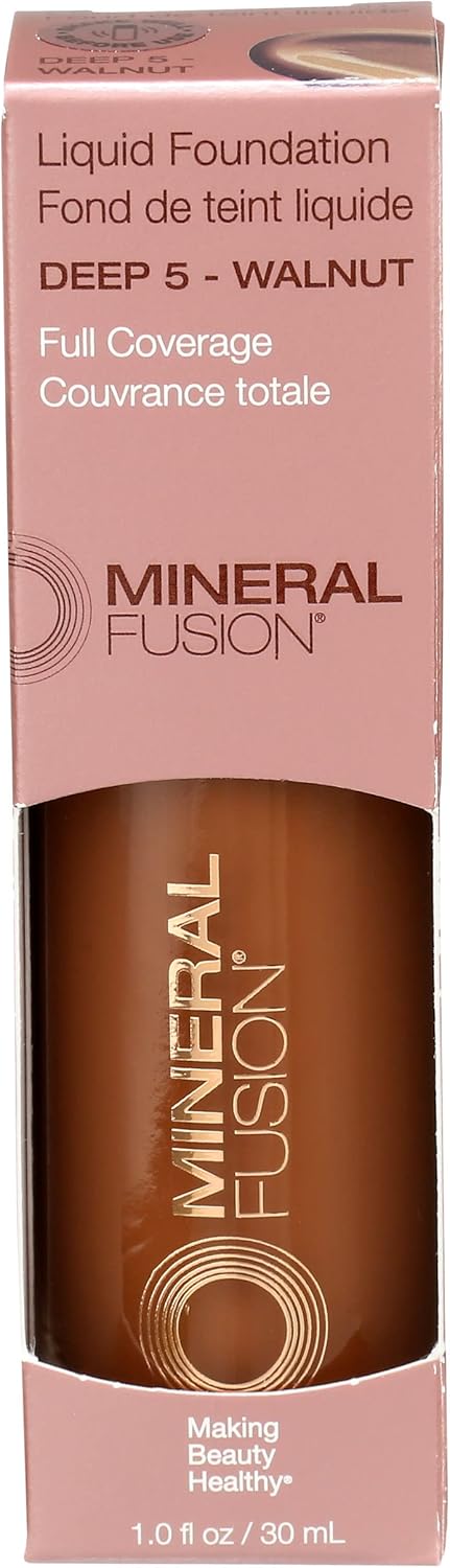 Mineral Fusion Full Coverage Foundation, Liquid Foundation - Deep 5- Deep Complexion w/Warm Undertones, Lightweight Matte Finish, Up to 12 Hr Hydration, Hypoallergenic & Vegan, 1 fl. oz