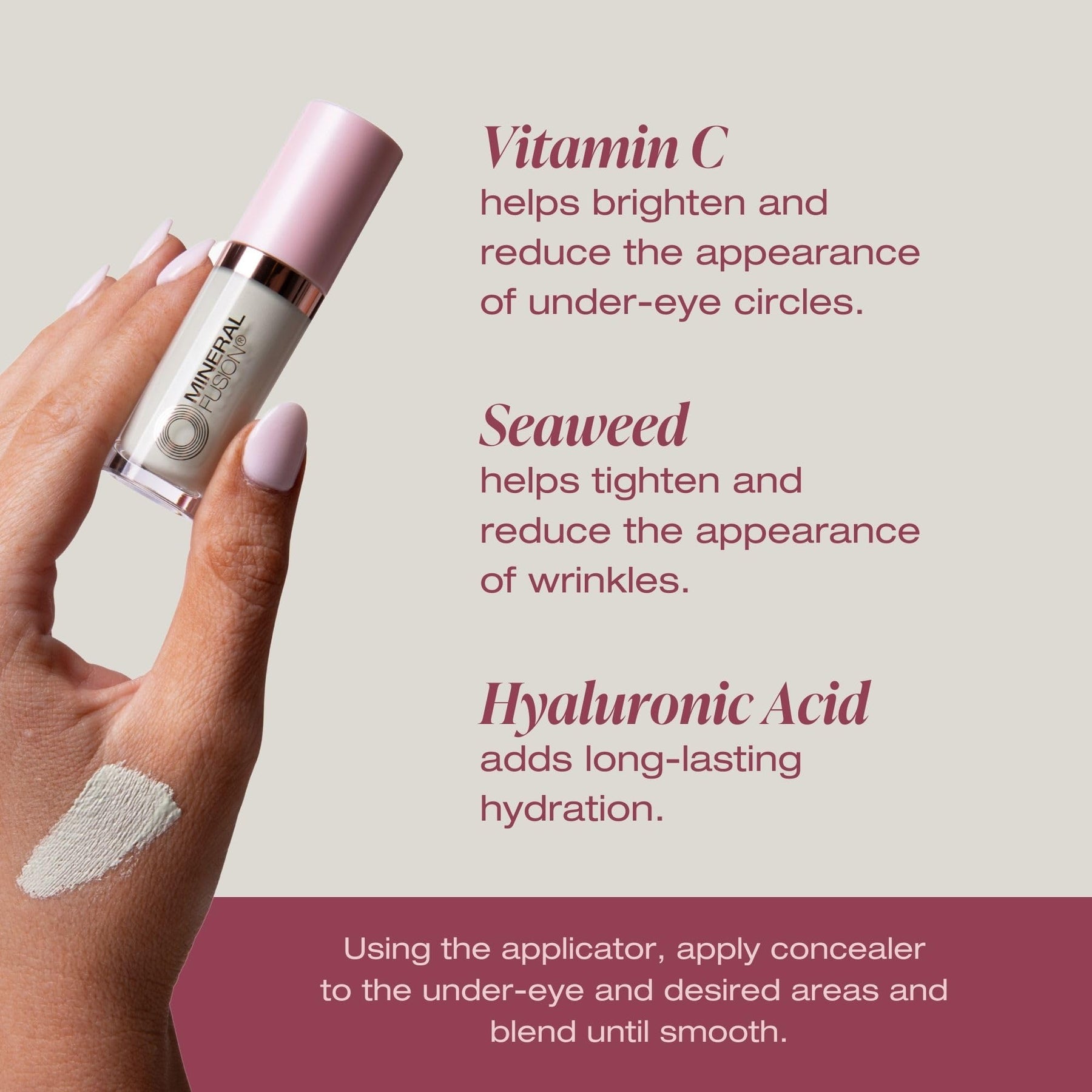 - A vegan, lightweight, full coverage concealer that erases dark circles, puffiness, and appearance of fine lines and covers up hyper pigmentation and acne spots.