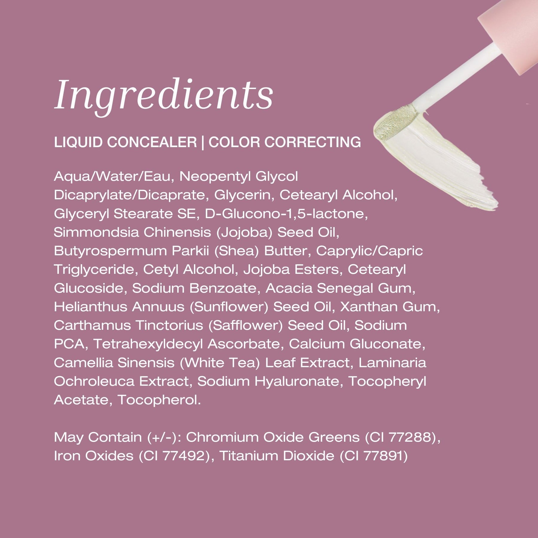 Apply a small amount of Liquid Concealer Correcting to areas needing coverage, such as under the eyes, blemishes, or areas of discoloration. Gently blend with a fingertip, sponge, or brush until seamlessly blended into the skin. Build coverage as needed.