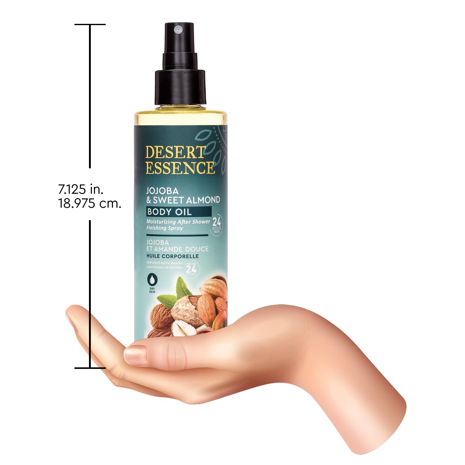 Desert Essence Jojoba & Sweet Almond Body Oil - 8.28 fl oz - Moisturizing After Shower Finishing Spray - Long Lasting 24 Hour Moisture - Smooth and Illuminate Skin - Non Greasy Lightweight Oil