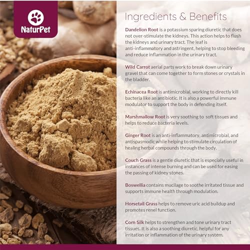 Naturpet Urinary Care is a natural solution designed to support and maintain a healthy urinary tract in pets. This carefully formulated blend of herbal extracts helps promote optimal bladder function and overall urinary health, contributing to your pet's comfort and well-being.