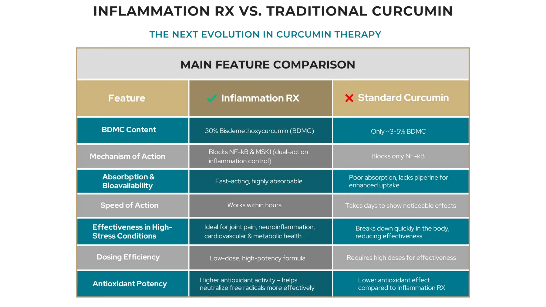 Ideal for those struggling with joint discomfort, inflammation, or reduced mobility, Inflammation RX helps reduce swelling, stiffness, and pain, allowing for improved flexibility and a better quality of life. Beyond pain relief, it provides comprehensive anti-aging support, protecting cells from oxidative stress and promoting vitality from the inside out.