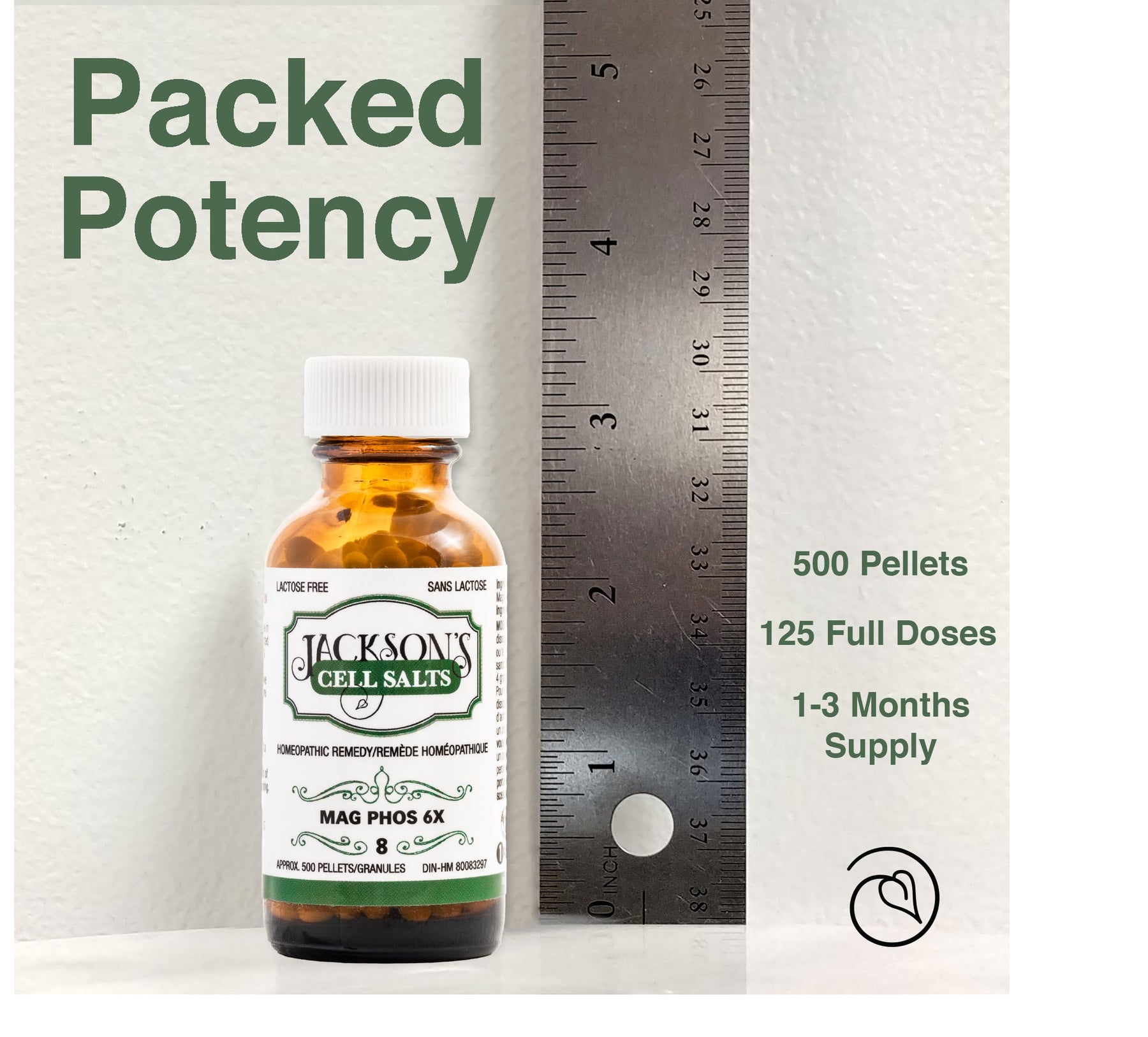 Jackson’s #8 Cell Salt Mag phos 6X (500 Pellet Bottle) – Certified Vegan, Lactose-Free Schuessler Tissue Salt Magnesia phosphorica 6X HPUS