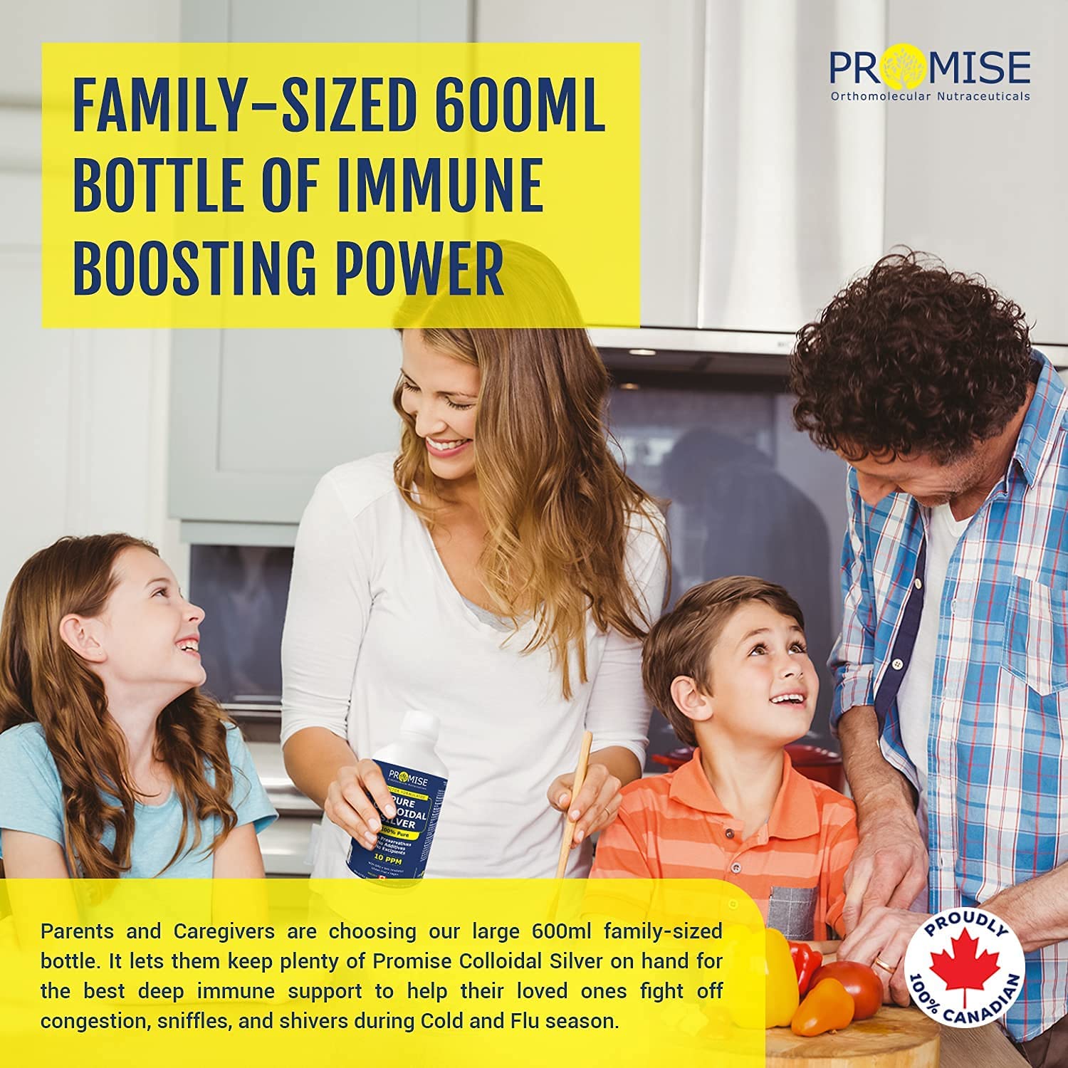Promise 100% Pure Colloidal Silver 600ml (20oz) Family Sized Super Liquid, 10 PPM, Superior Bioavailability, No Preservatives, No Additives, No Excipients, Deep Nano Mineral Relief, Made in Canada