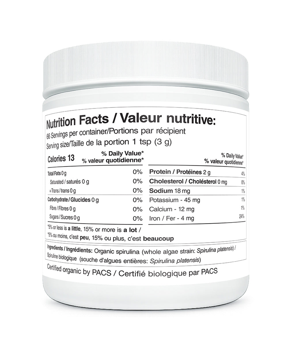 Regenurex Organic Spirulina is incredibly versatile—blend it into water, juice, or your favorite smoothie for a quick nutrient boost, or incorporate it into baked goods for a healthy twist. Certified organic and 100% pure microalgae, this superfood is gluten-free, non-GMO, and suitable for a wide range of dietary needs. Each jar contains 200g of powder, delivering approximately 66 servings at 1 teaspoon (3g) per serving, making it easy to incorporate this powerhouse superfood into your daily routine.