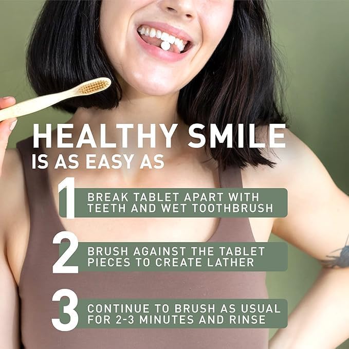 - Eco-Friendly: Reduce plastic waste with our convenient, plastic-free toothpaste tabs.