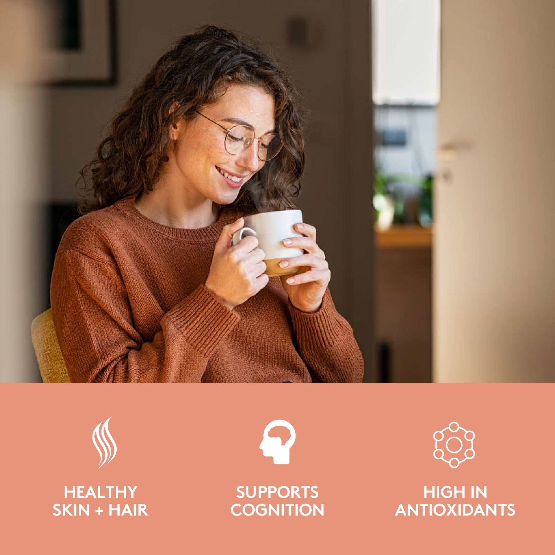 - 500mg of functional mushrooms (reishi, chaga, lion’s mane, turkey tail) per serving