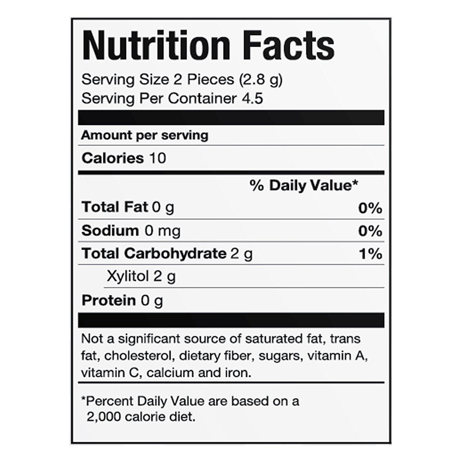 • 7 Simple Ingredients: Xylitol, Gum Base, Gum Arabic, Glycerol, Natural Flavors,, Carnauba Wax, Tocopherols.