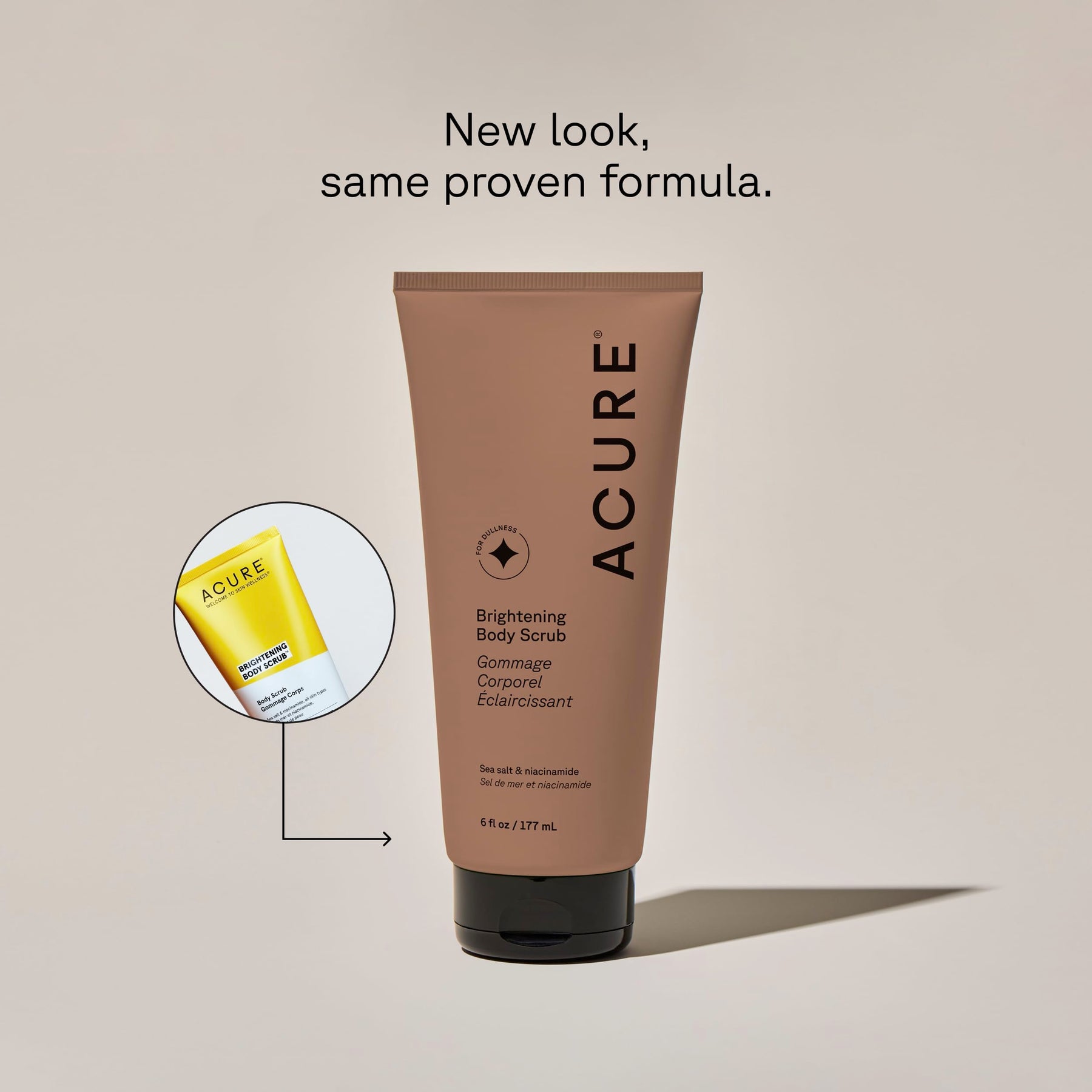 - BRIGHTENING BODY SCRUB - Acure Brightening Body Scrub with natural sea salt gently removes dull, dry skin to reveal a smoother, softer, and more radiant-looking glow