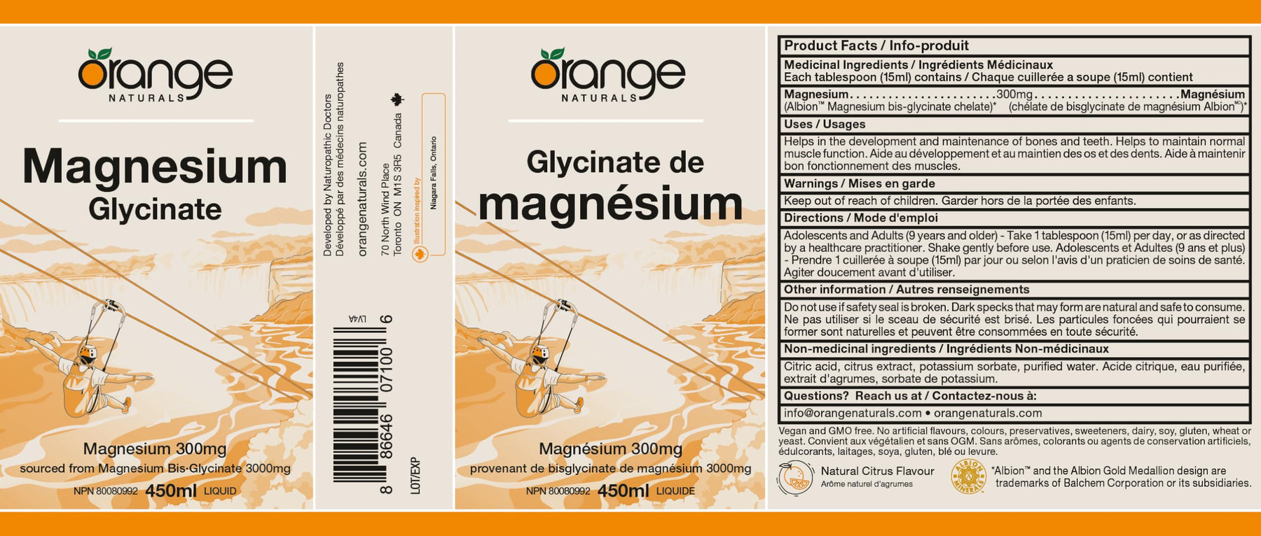 Orange Naturalsâ Magnesium Glycinate Liquid offers a potent, clinical dose of 300mg of pure, elemental magnesium in a smooth, easy to drink, liquid form with a yummy natural citrus flavour.