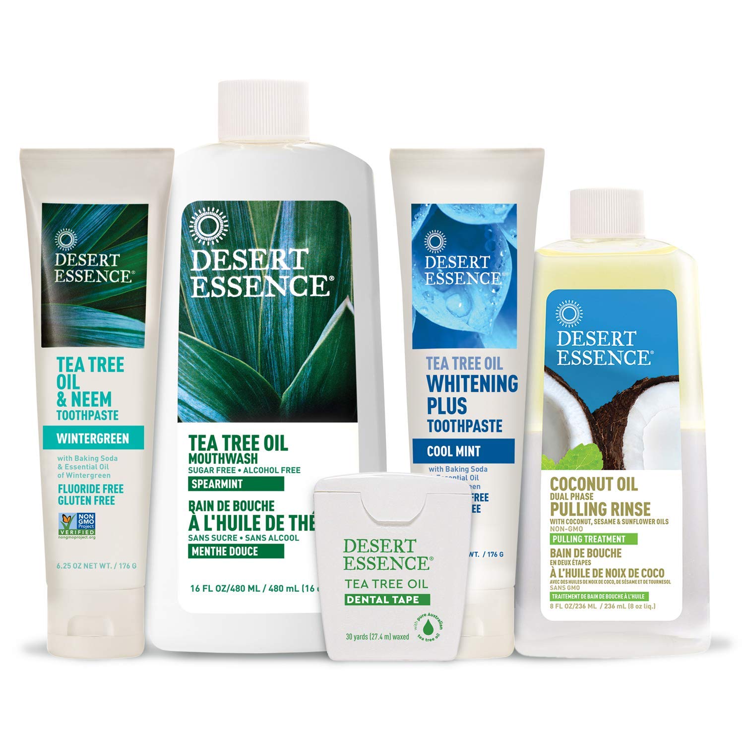 Use Desert Essence waxed dental tape with toothpaste, mouthwash, and dental photos.
