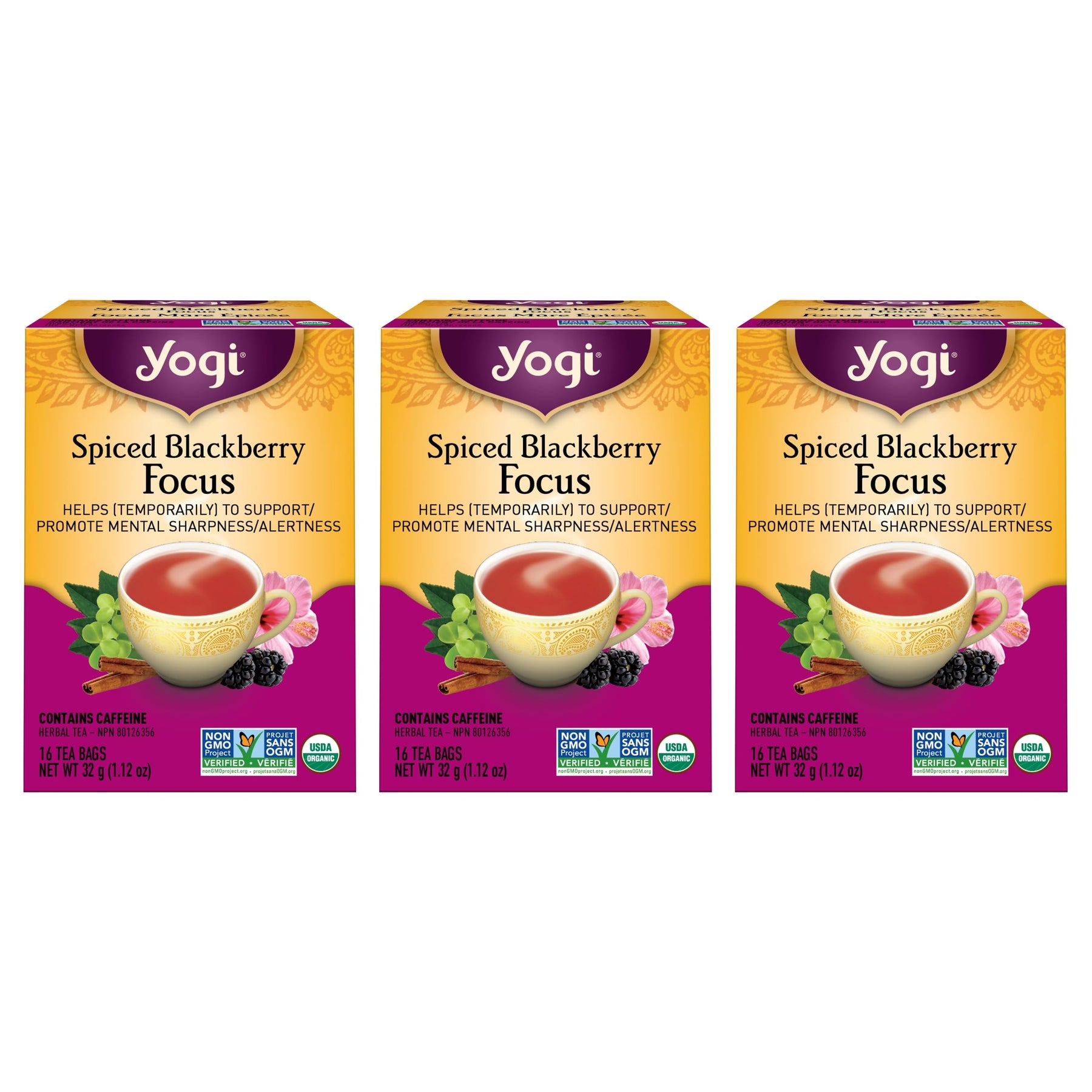 Yogi Tea Spiced Blackberry Focus (Pack 3) - 48 Tea Bags - Contains Caffeine - Supports Focus & Alertness - Includes Clove, Cinnamon, Blackberry & More