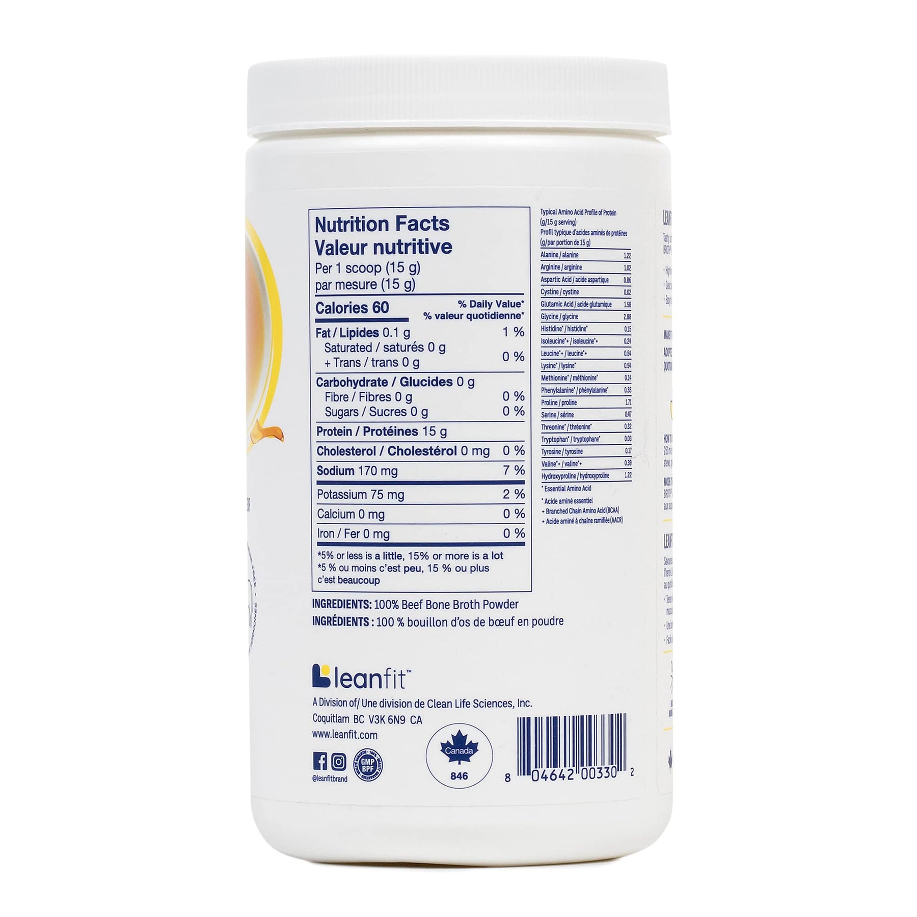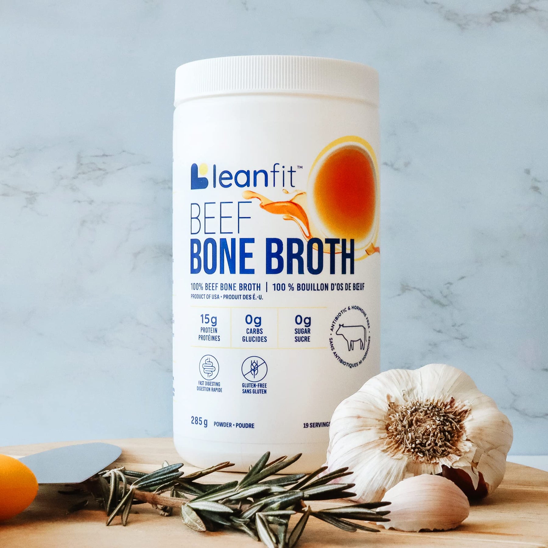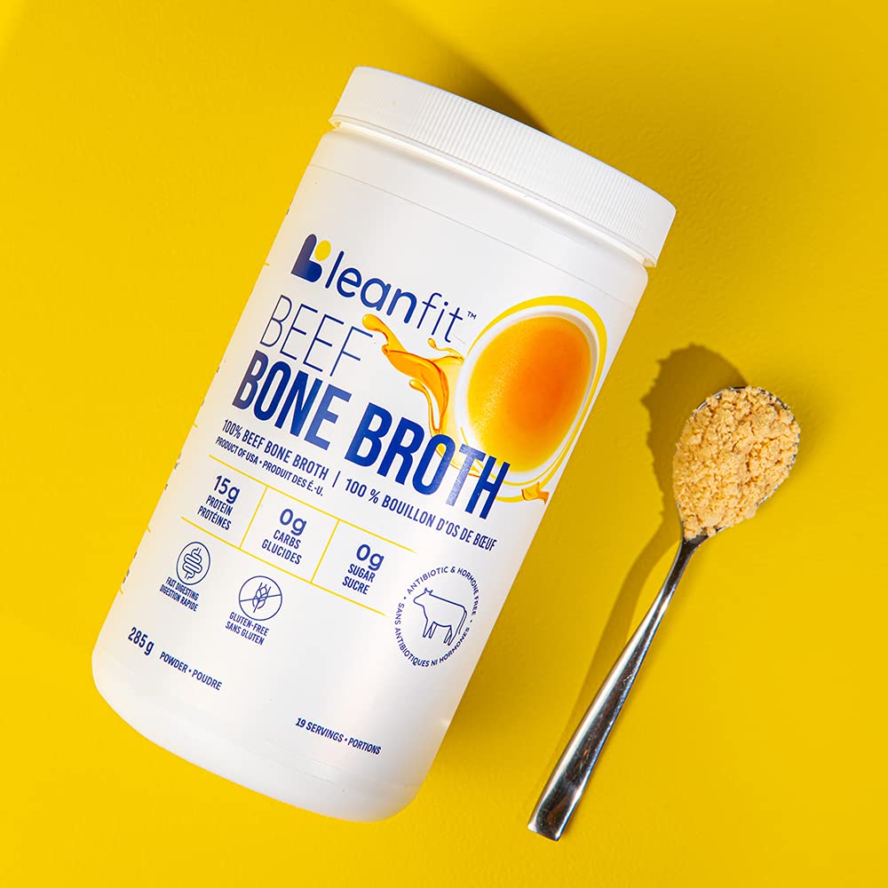 LEANFIT BEEF BONE BROTH Powder - 100% Beef Bone Broth, 15g Protein Per Serving - Antibiotic & Hormone Free, Grass-Fed, Gluten-Free - 19 Servings, 285g Tub