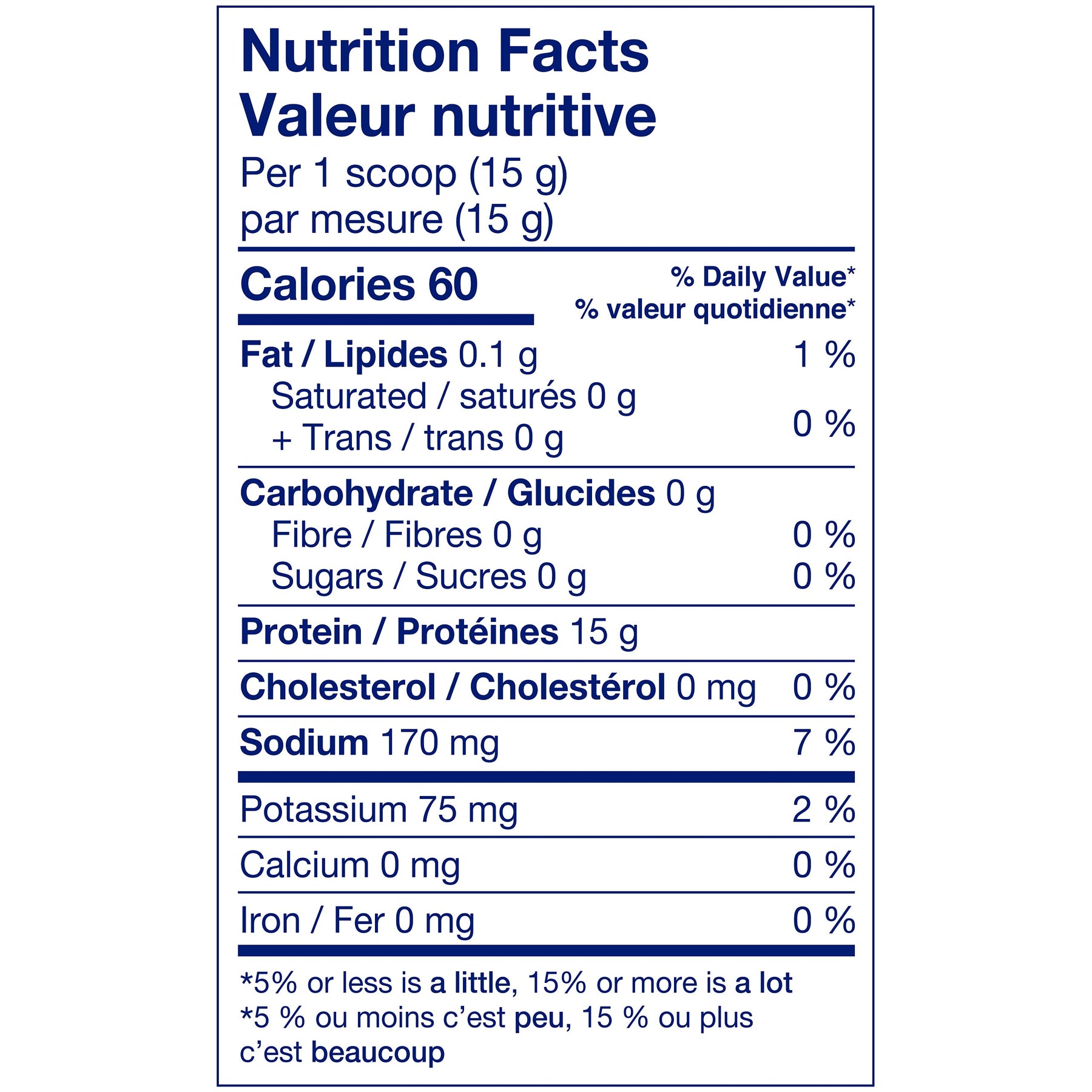 - 19 SERVINGS PER CONTAINER - 1 SCOOP PER SERVING: Stir one 15g scoop into 250mL (8oz) of warm or hot water, or get creative, use as broth in soups, stews, gravy and more!