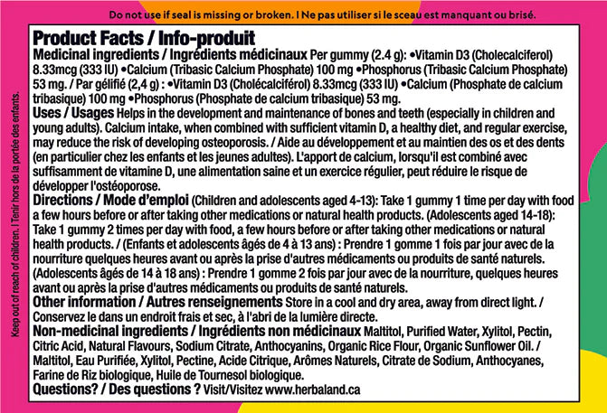 Give your kids the building blocks for strong bones and healthy growth with Herbaland Kids Calcium Bears! These delicious gummies offer: