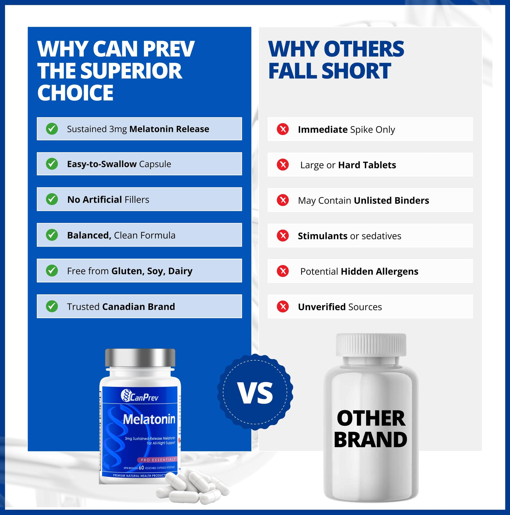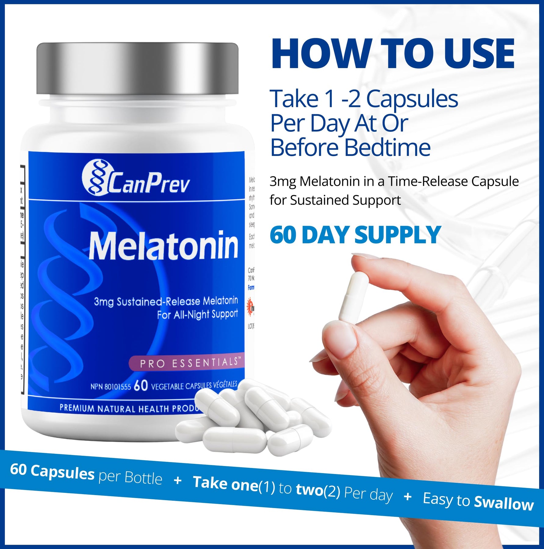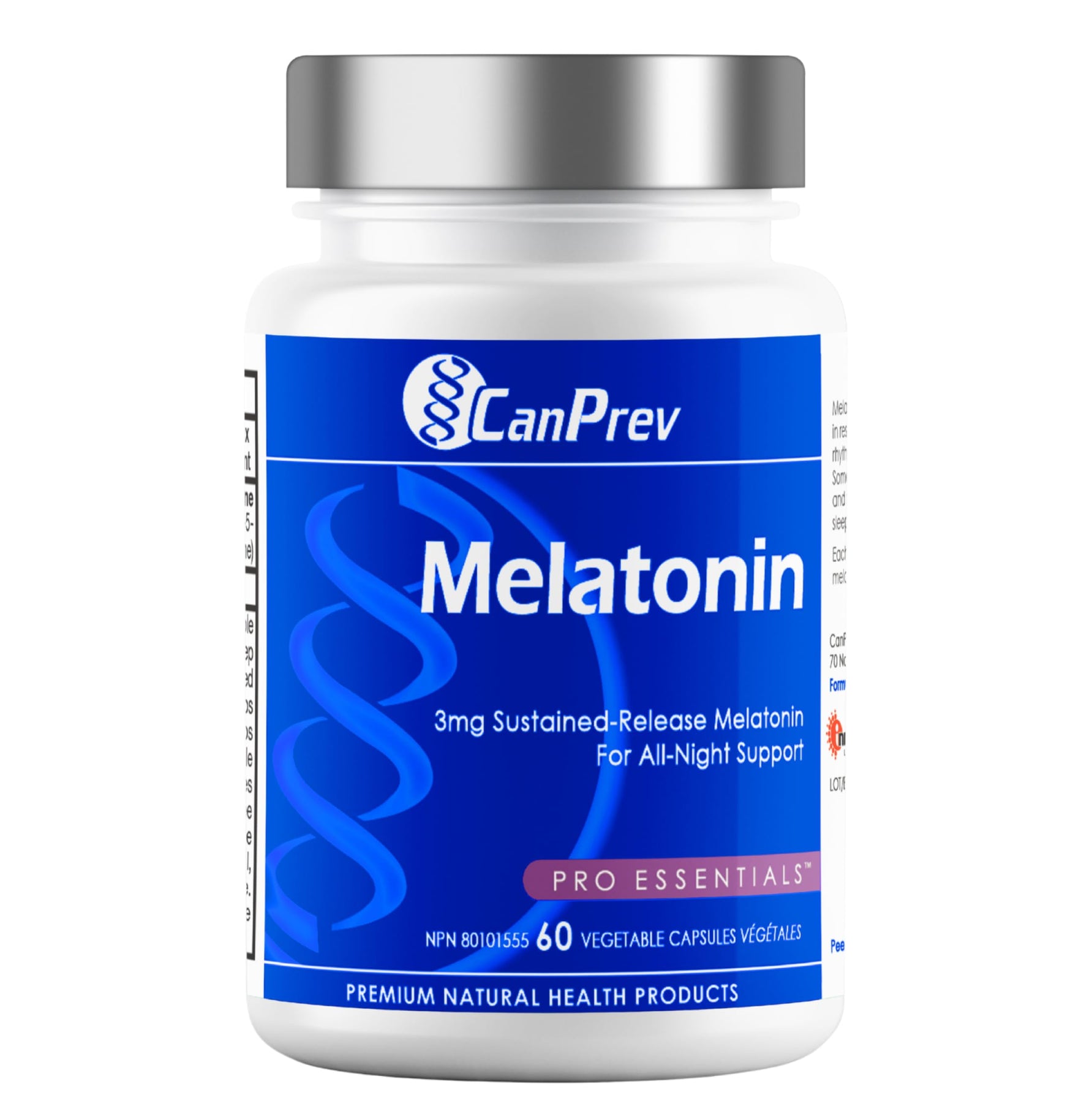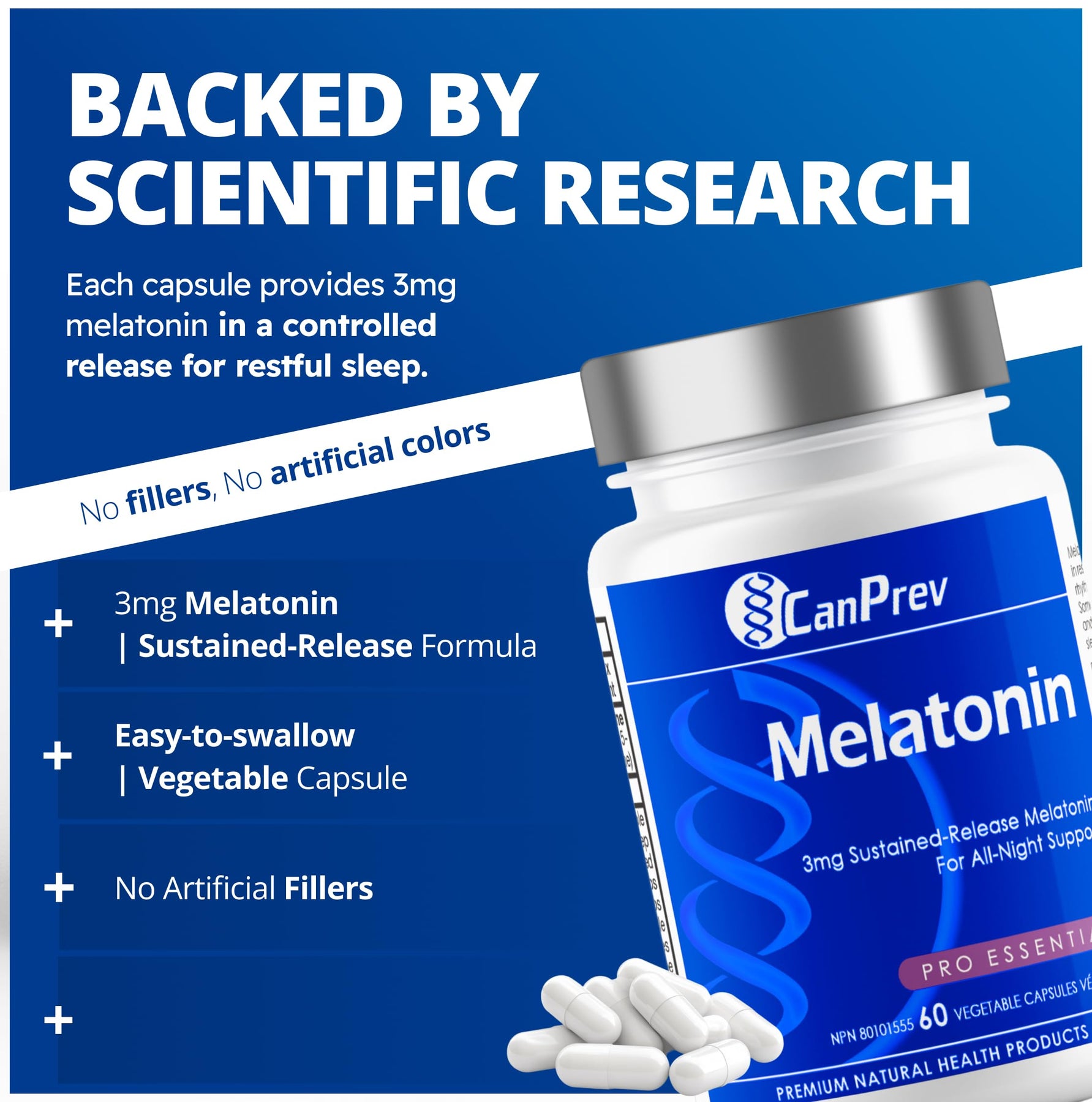 CanPrev Pure Melatonin 3 mg Sustained-Release, 60 Vegan Caps 60-Day Supply - Supports Restful & Extended Sleep Management, Travel Adjustments & Natural Sleep Rhythm - Melatonin Supplement for Adults