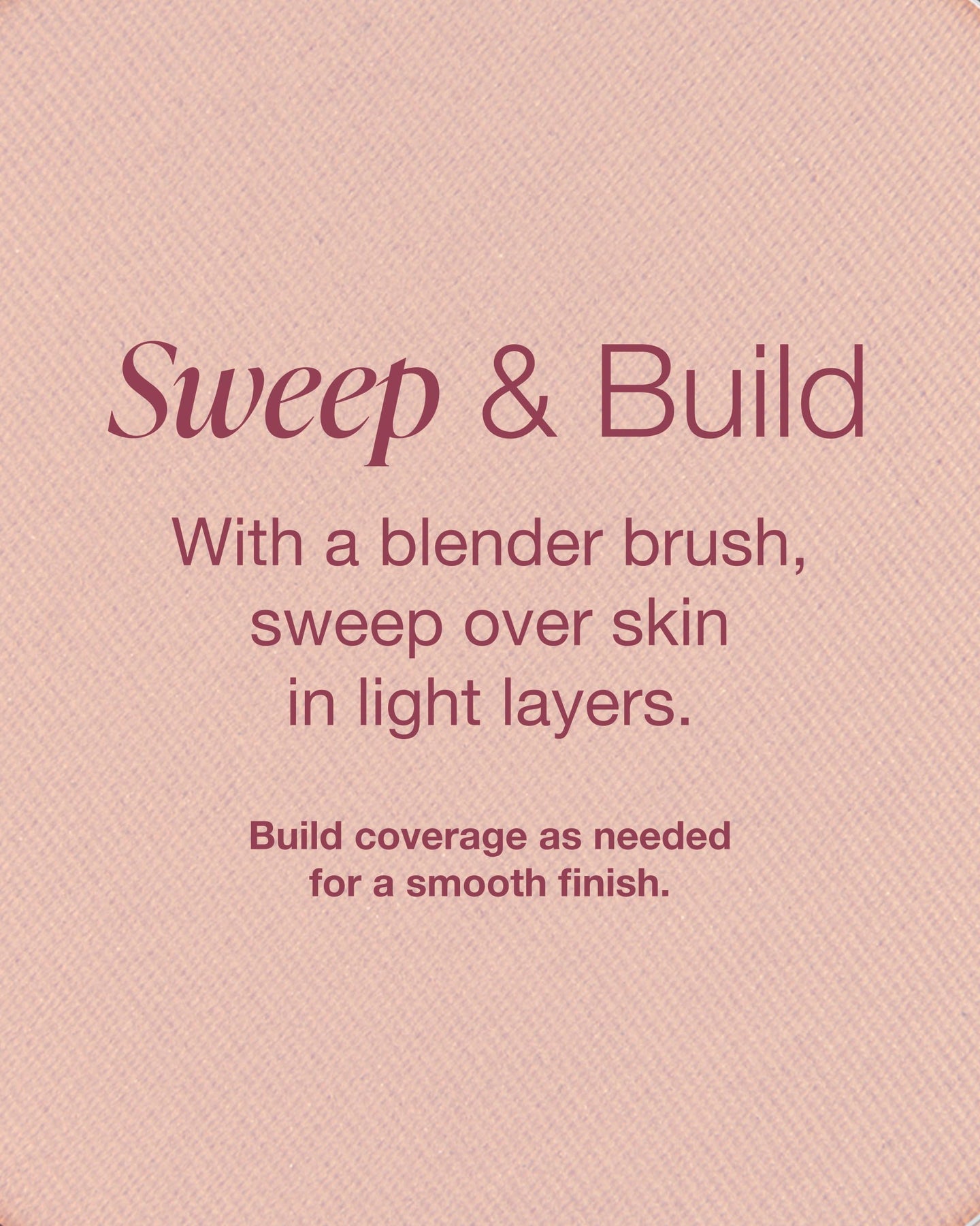 Using a powder brush, swirl into the Pressed Base and tap off excess. Apply to face in light, circular motions, starting at the center and blending outwards. Build coverage as desired.