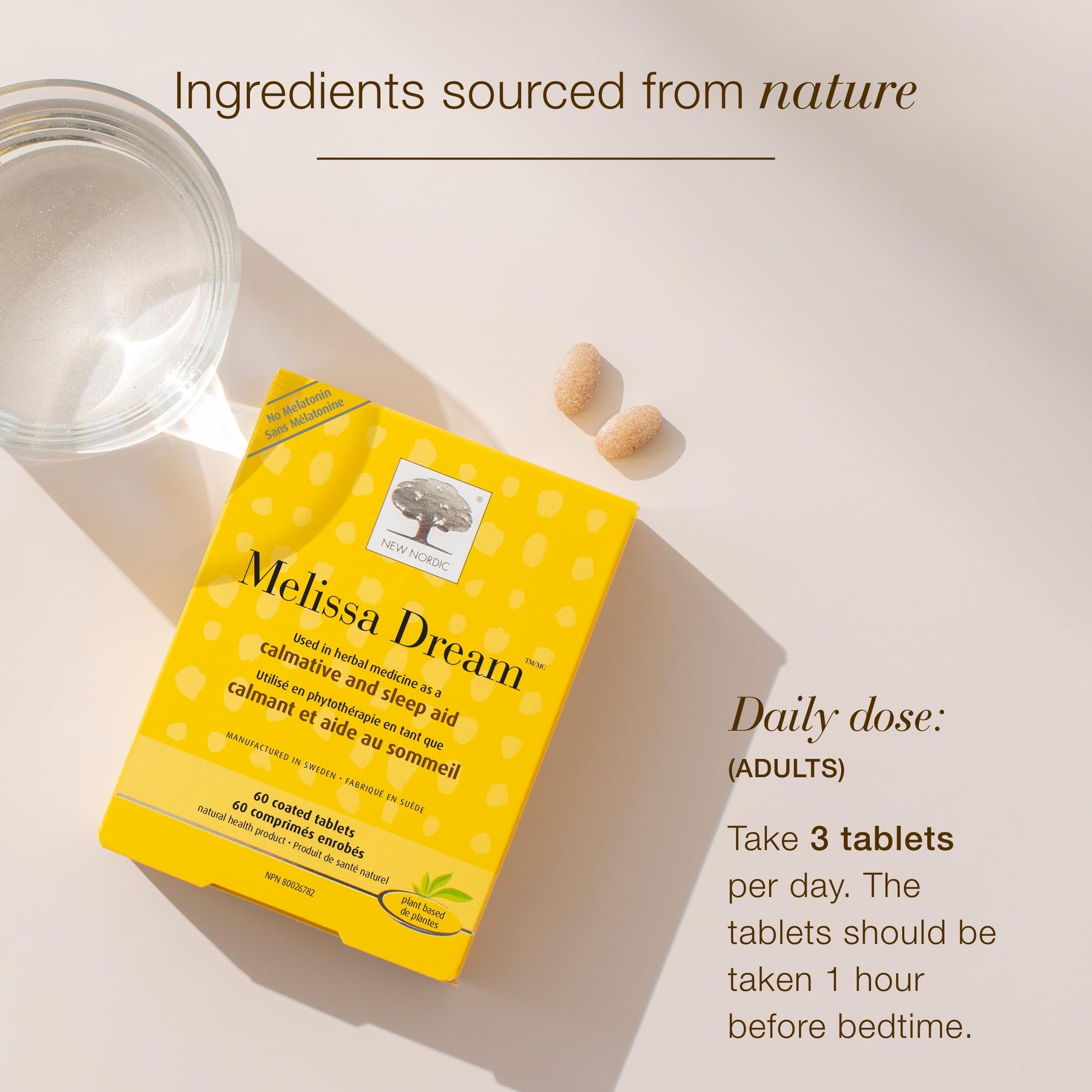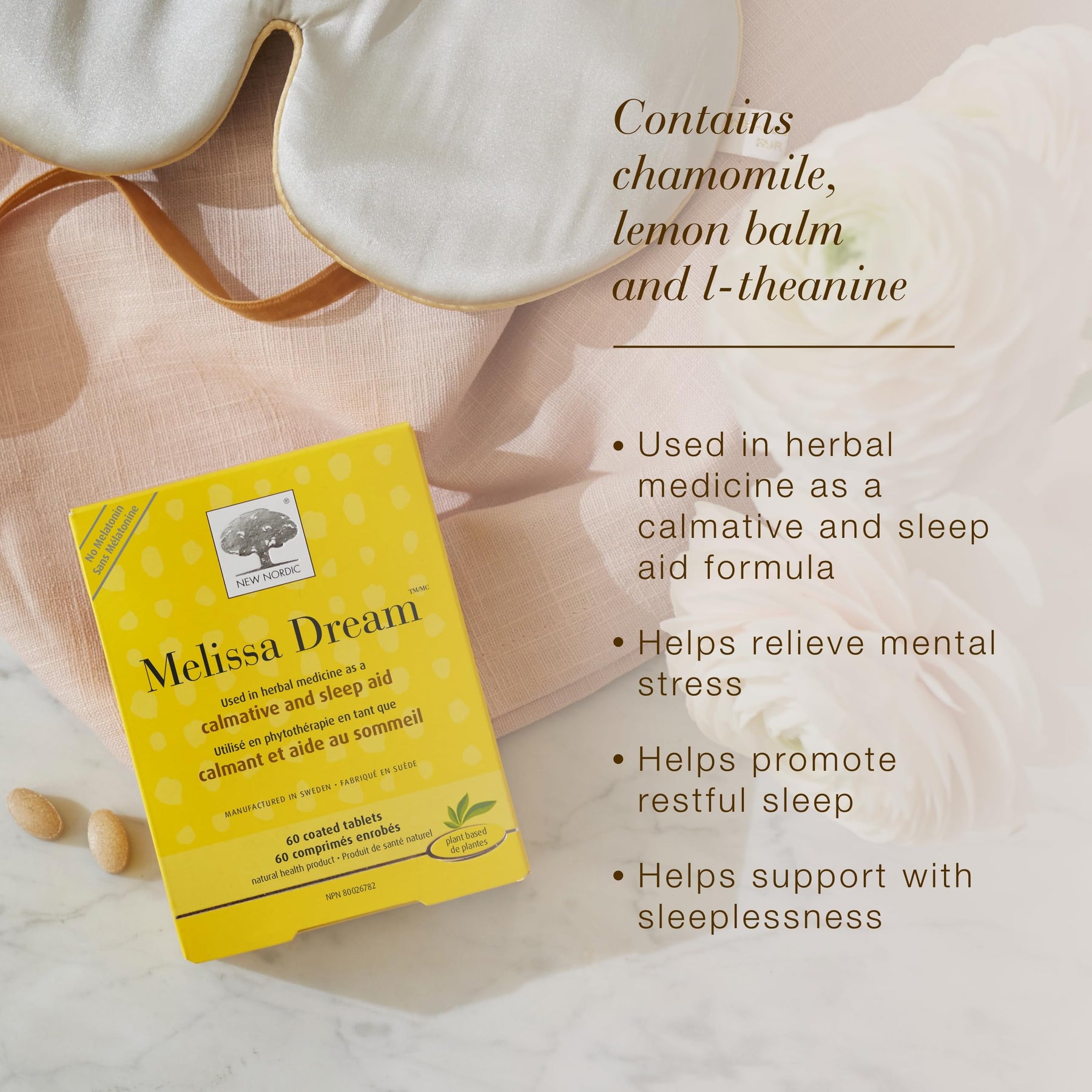 New Nordic Melissa Dream - Herbal Sleep Support Supplement with Lemon Balm & Chamomile - Encourages Restful Sleep without Melatonin - Non-GMO, Gluten-Free & Dairy-Free - 60 Vegan Tablets