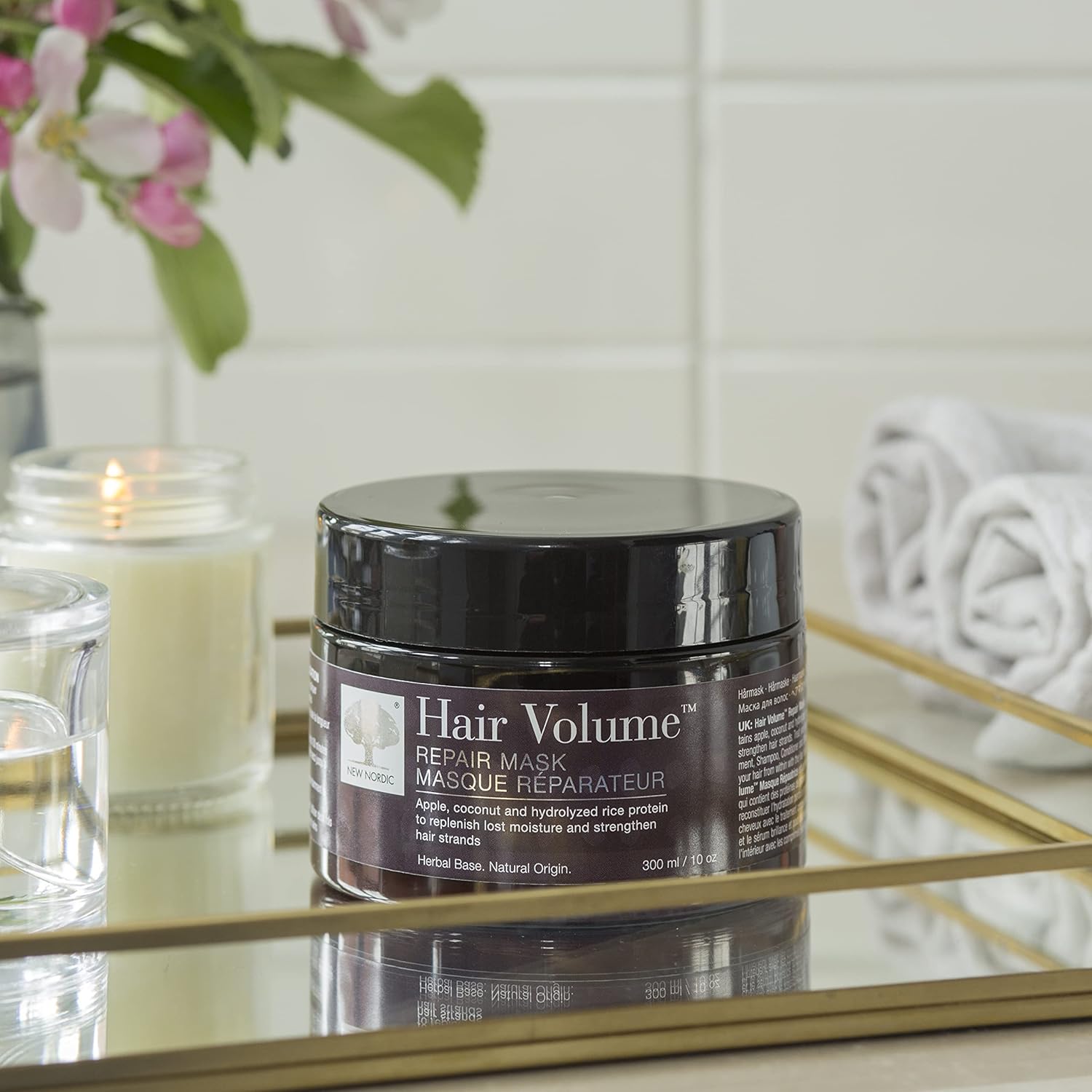 Hair Volume ™ Repair Mask contains apple, coconut and hydrolyzed rice protein, which helps rebuild the hair's moisture balance and strengthens the hair strands. For optimal results, we recommend using Repair Mask in combination with the other products in the Hair Volume series.
