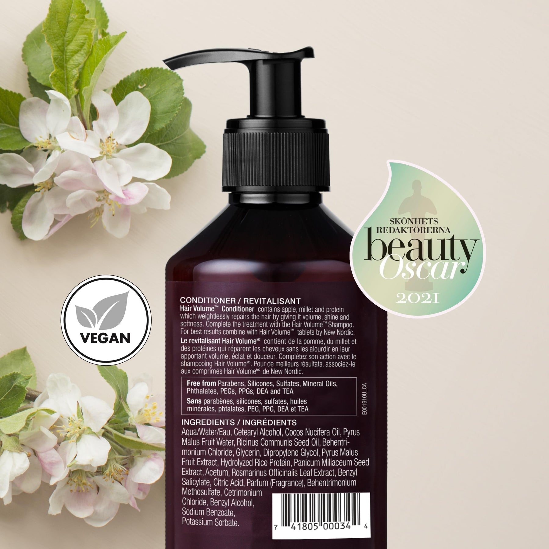 New Nordic Hair Volume Conditioner - Vegan, Non-GMO Deep Conditioner for Healthy, Shiny Hair - Made with Apple, Millet & Protein - Free from Parabens, Silicones & More - 8.5 Fl Oz