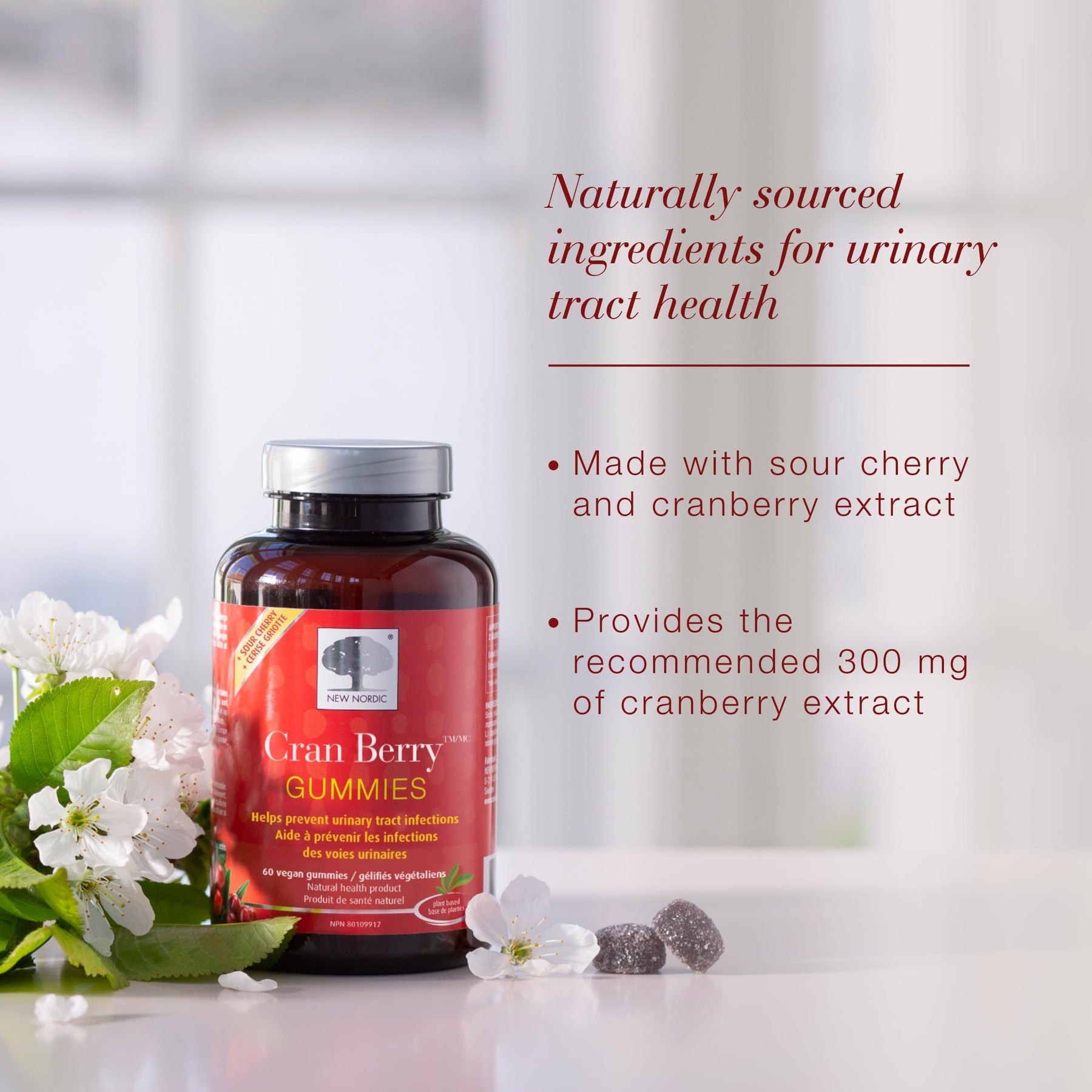 New Nordic Cran Berry Gummies - Gluten-Free, Dairy-Free Herbal Supplement to Support Urinary Tract & Bladder Health - Contains Sour Cherry & Cranberry Extracts - 60 Vegan Gummies