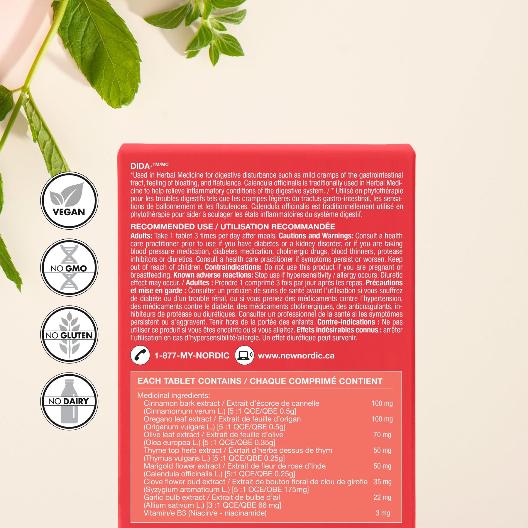 New Nordic Dida - Herbal Digestive Supplement to Support Cramps, Bloating & Flatulence - Contains Cinnamon, Oregano & More - Non-GMO, Dairy-Free & Gluten-Free - 60 Vegan Tablets