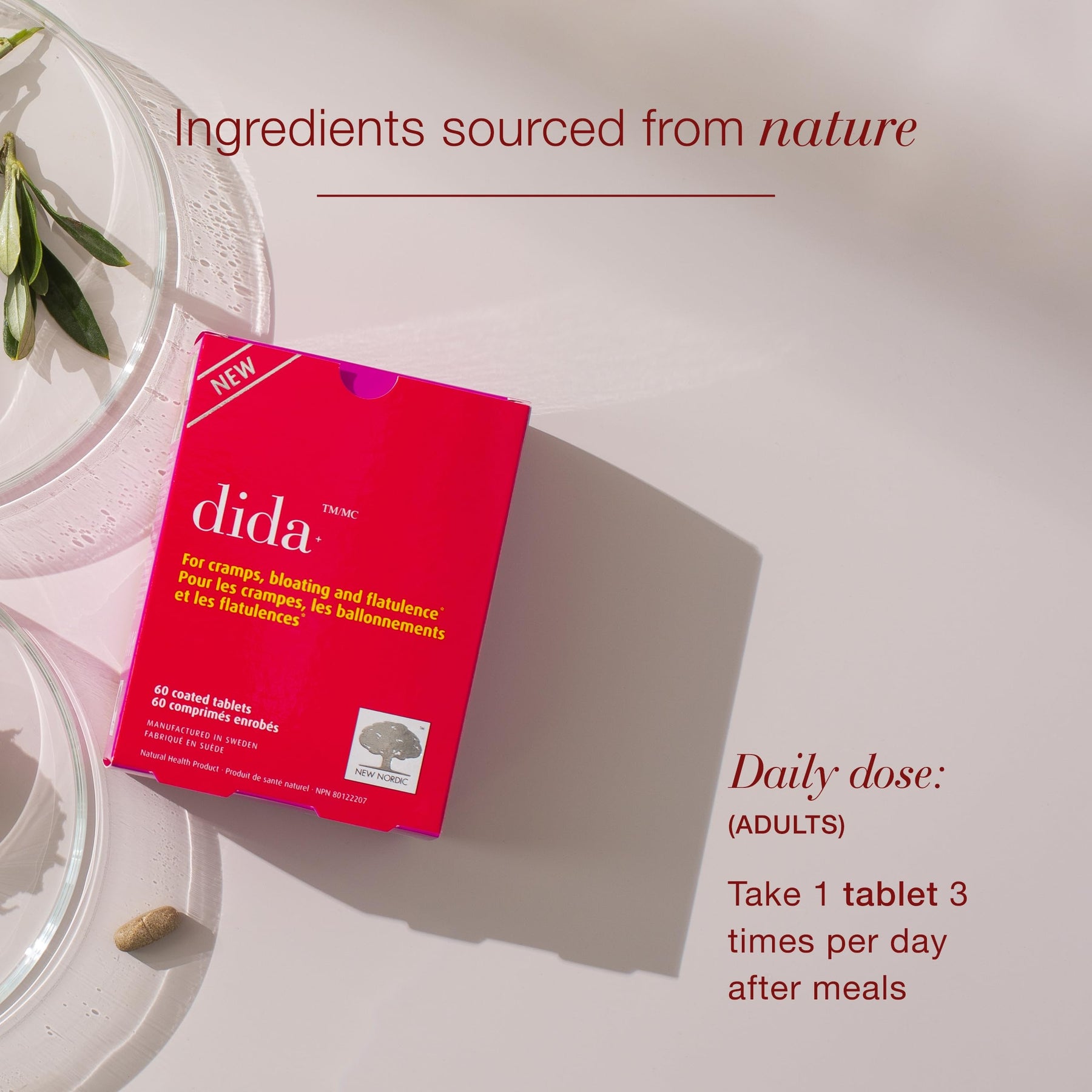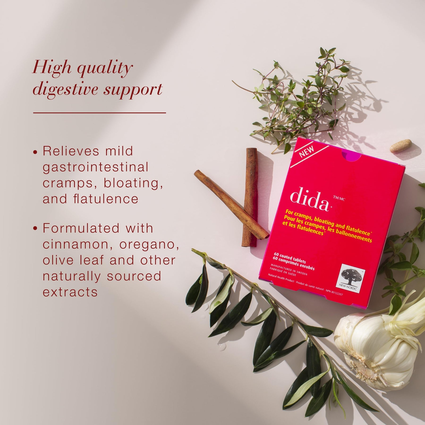 - Digestive Comfort: Dida is an herbal digestive supplement designed to support mild gastrointestinal cramps, bloating, flatulence and yeast levels*
