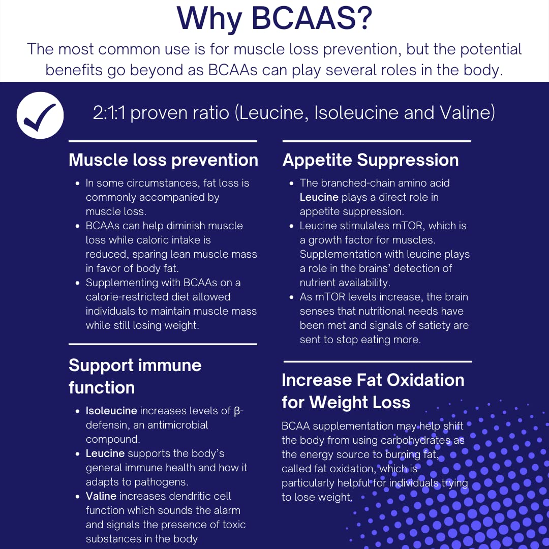 - 2:1:1 ratio (Leucine , Isoleucine, Valine)Make The Most Of Every Day: An energy drink with pure BCAA amino acids may help fuel your muscles, increase your performance, support your weight management goals, combat fatigue, promote your digestion, and raise your energy levels.
