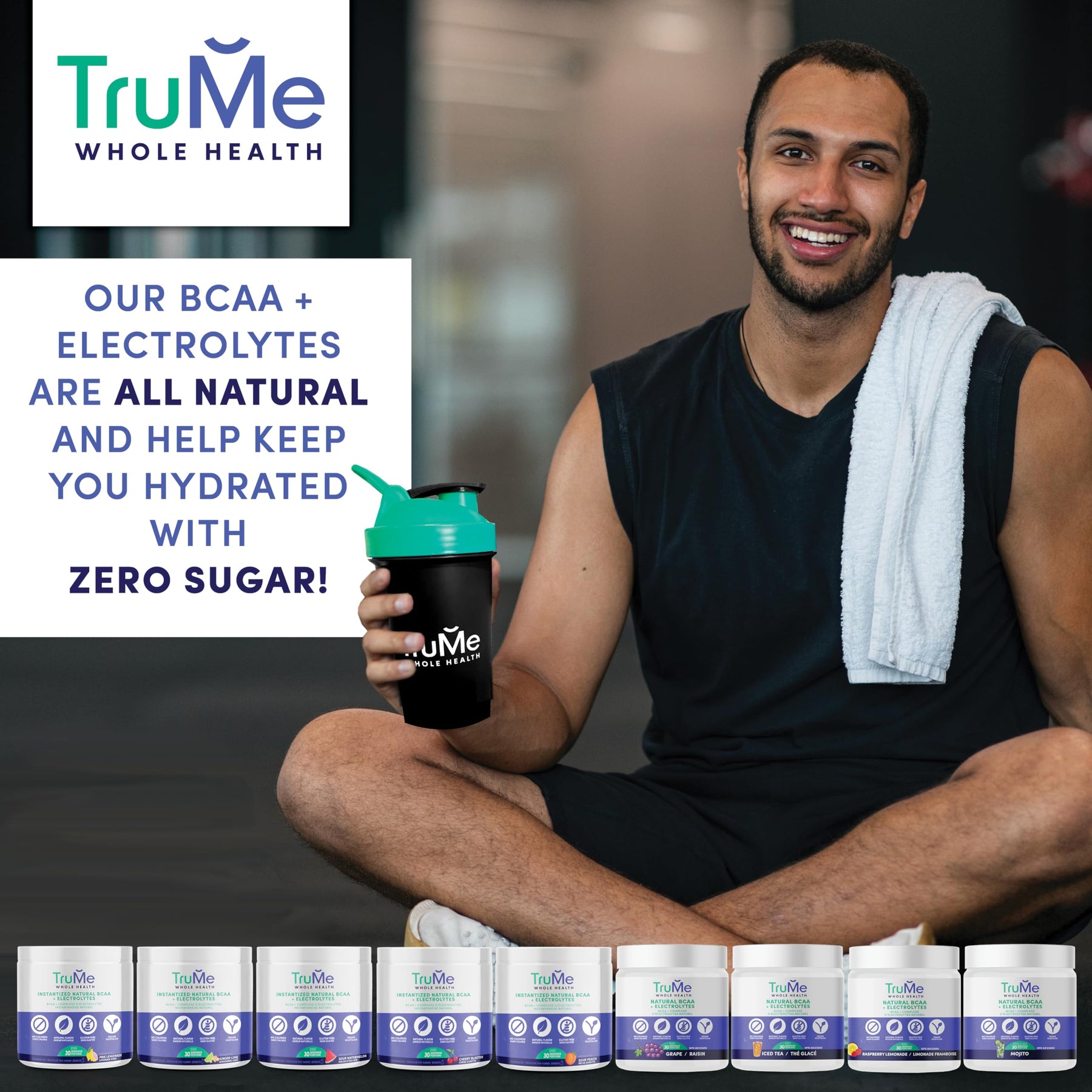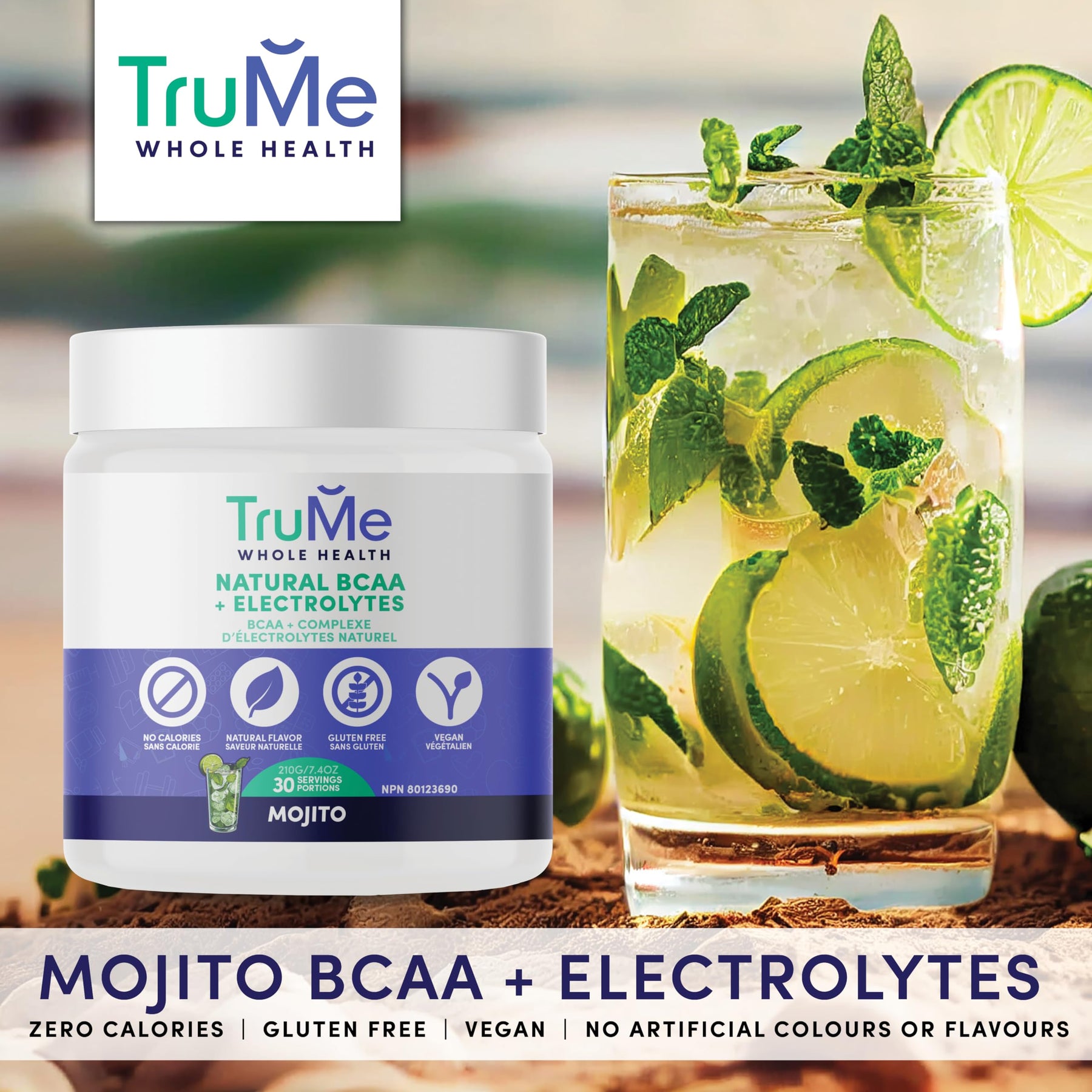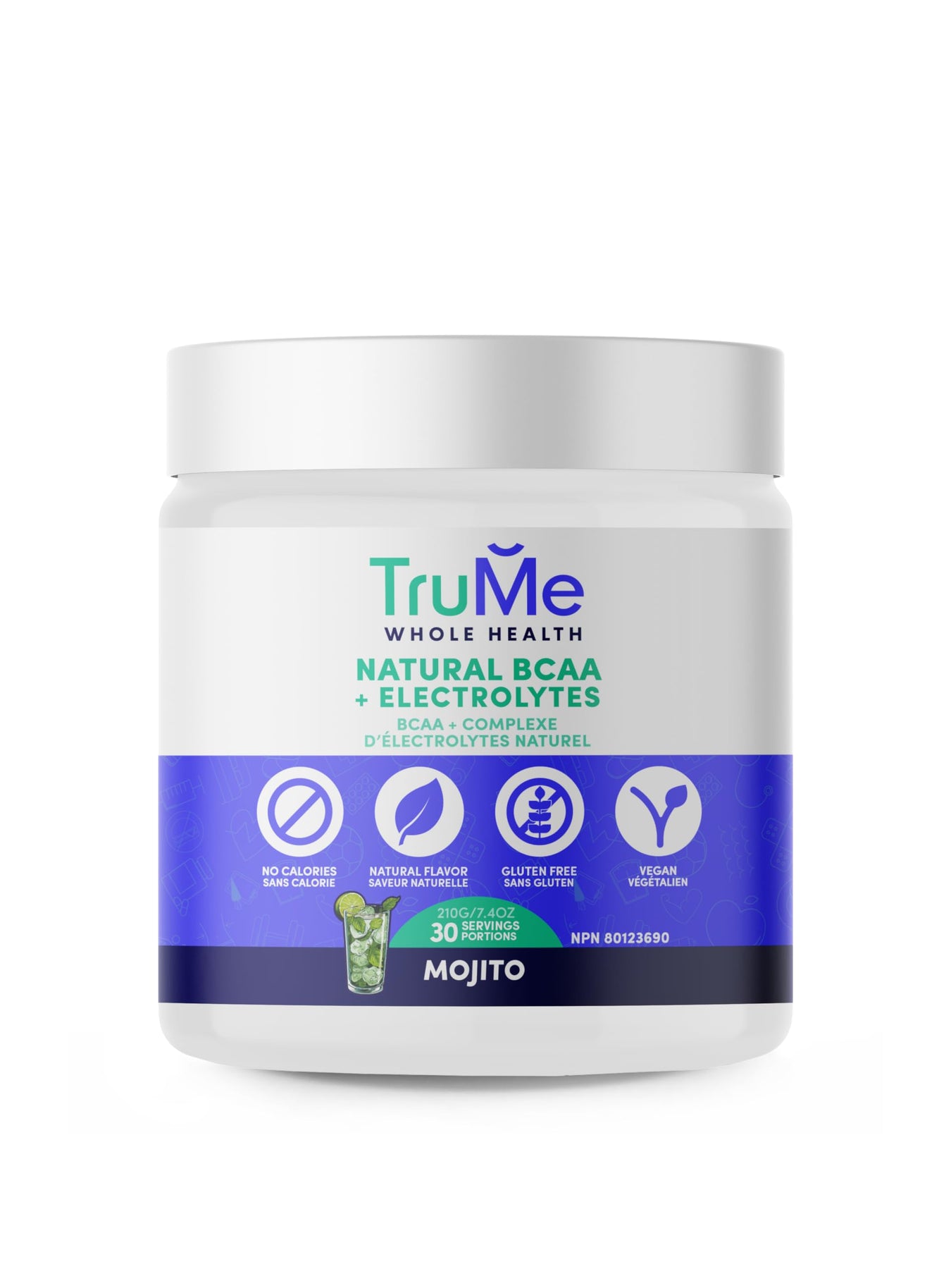 Mix one scoop (approximately 7g) of TruMe Whole Health BCAA+Electrolytes Mojito with 8-12 ounces of cold water. Shake or stir well until dissolved. Consume before, during, or after your workout.