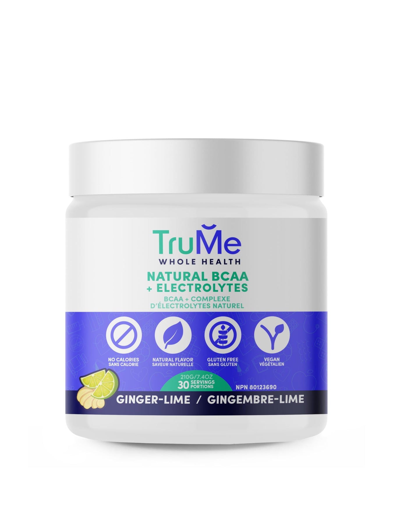 Fuel your workouts and recovery with TruMe Whole Health BCAA+Electrolytes in refreshing Ginger Lime flavor! This powerful formula provides: